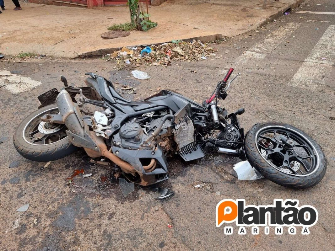 Um motociclista ficou gravemente ferido após colidir de frente com um carro no início da tarde deste domingo (06) no bairro Jardim Tarumã, em Maringá.