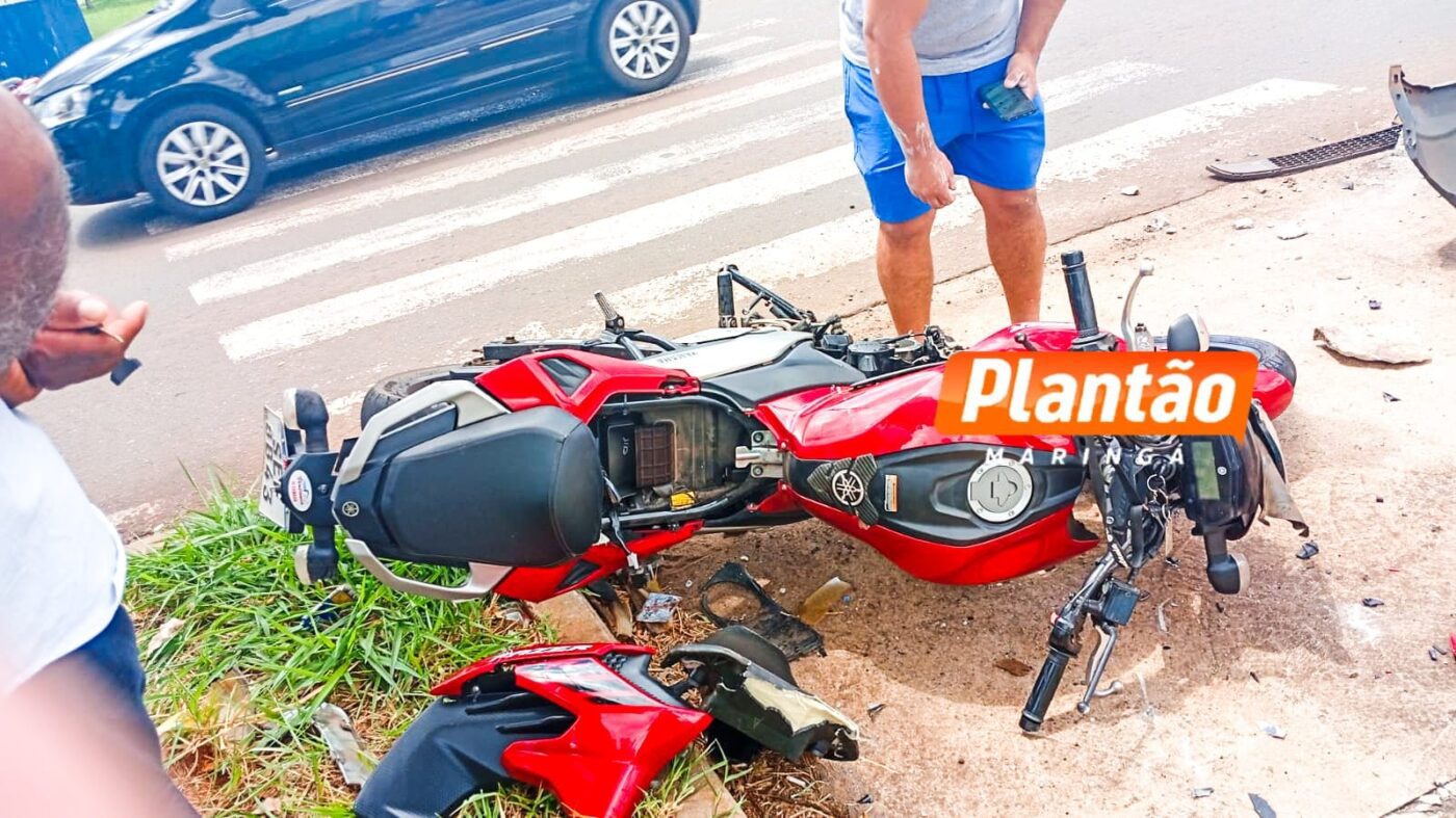Um grave acidente foi registrado na tarde deste sábado (8) no cruzamento da Avenida Franklin Delano Roosevelt com a Marginal do Contorno Norte, no Conjunto Requião, em Maringá. A colisão envolveu uma motocicleta e um veículo Fiat Fiorino e ocorreu após um dos motoristas avançar o sinal vermelho.
