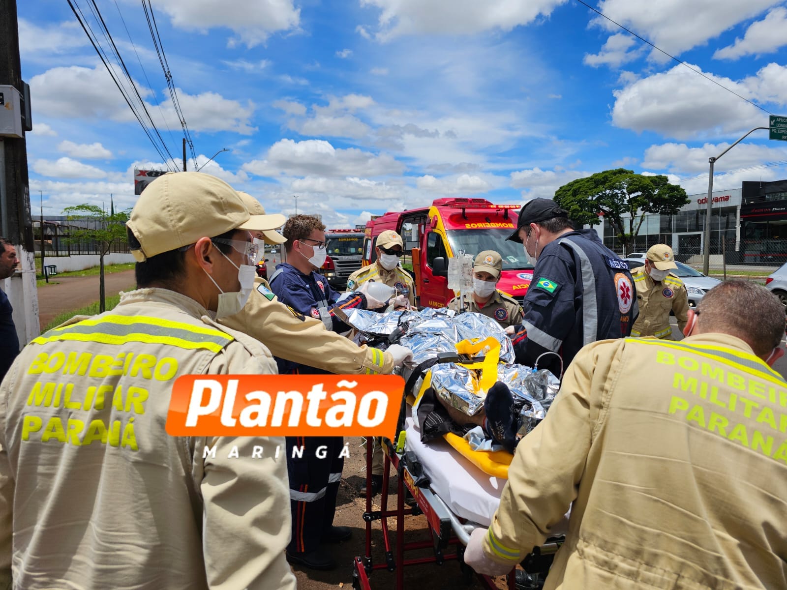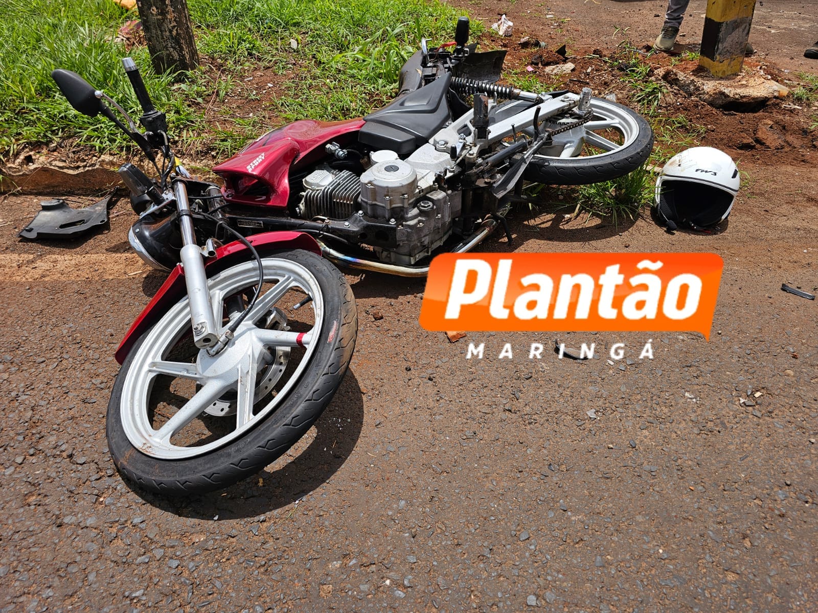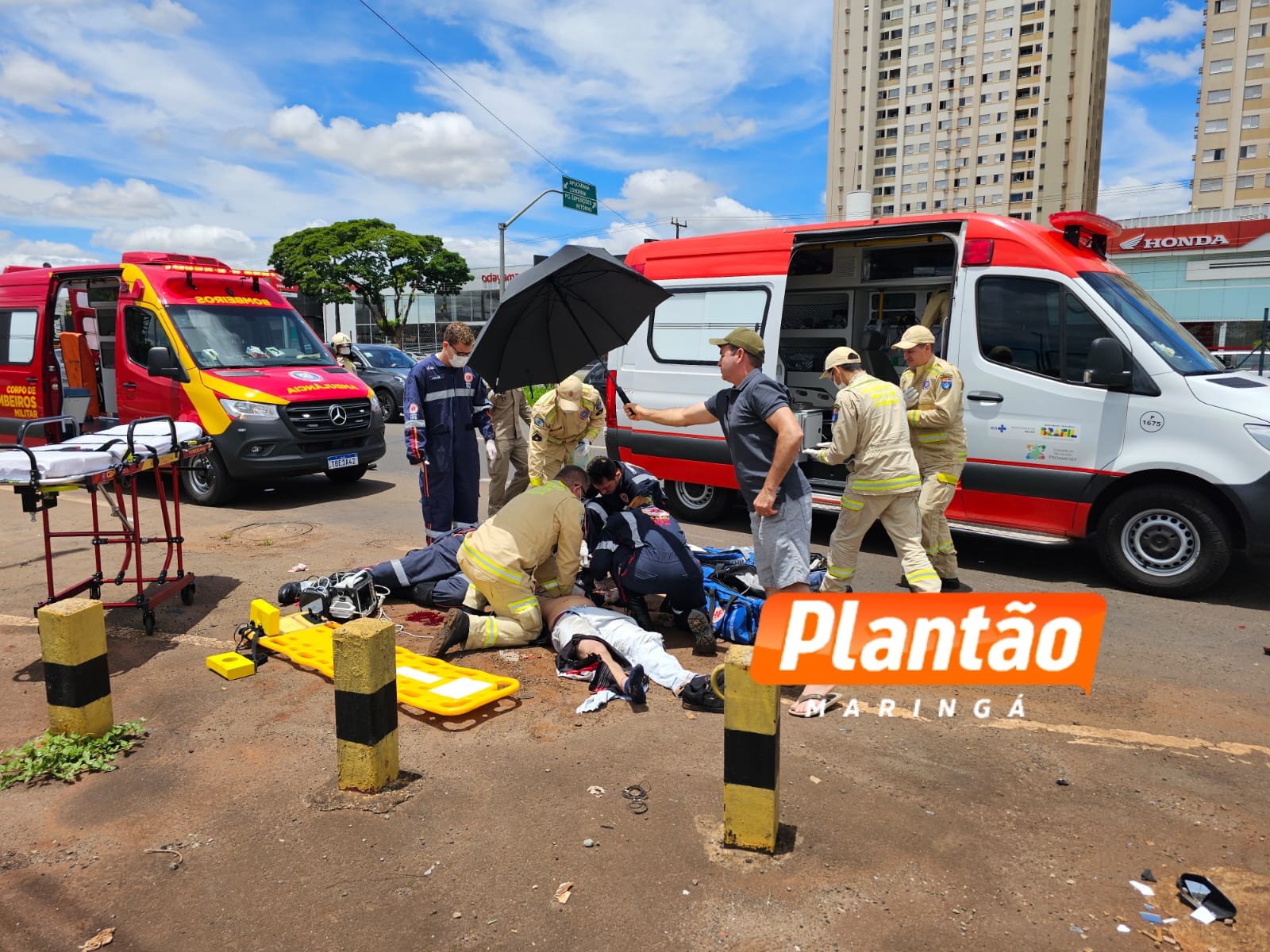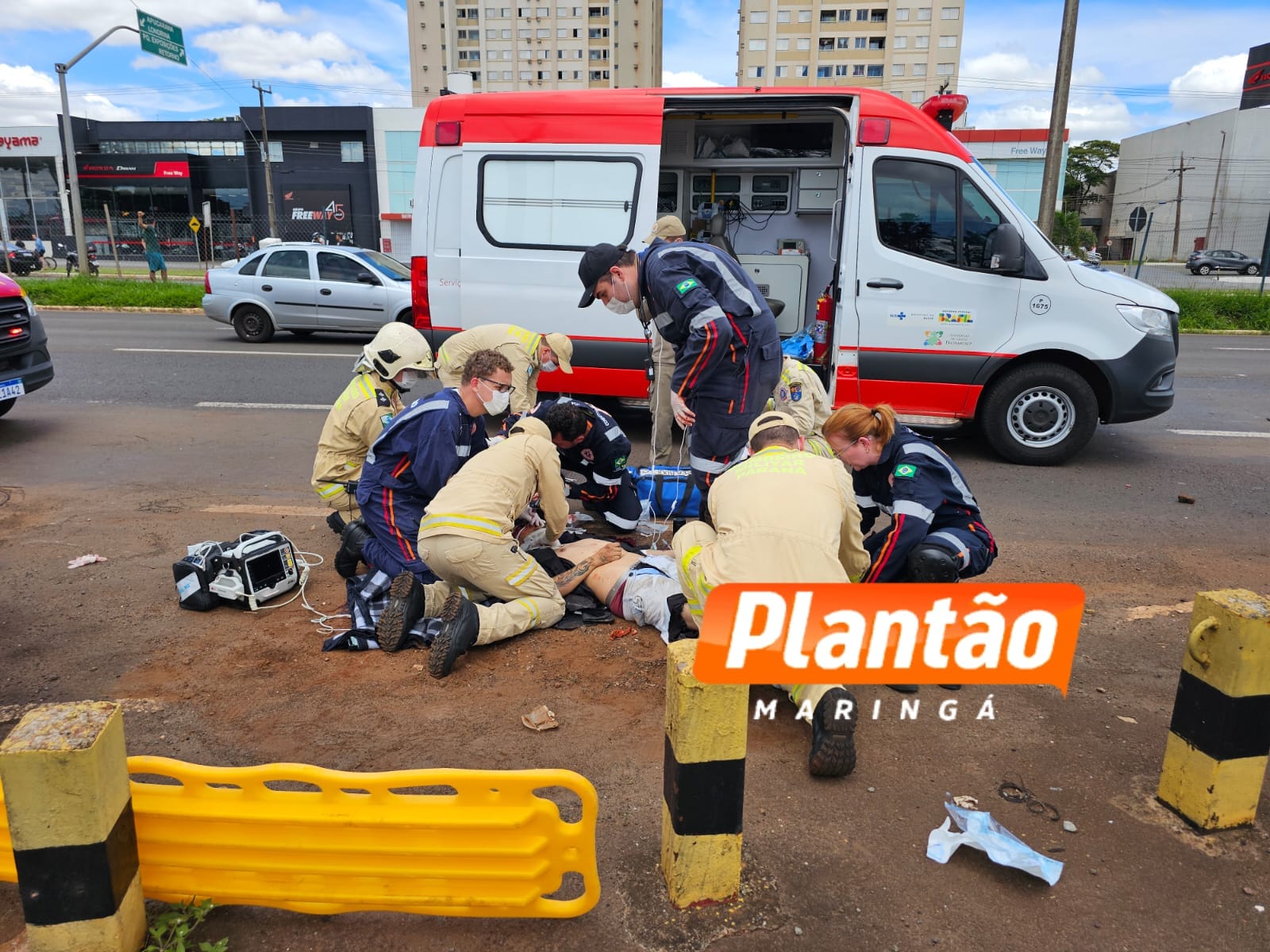 Guilherme Neto, motociclista, foi socorrido em estado gravíssimo após sofrer uma queda de moto no final da manhã deste domingo (09), na Avenida Colombo, em frente ao Parque de Exposições de Maringá.