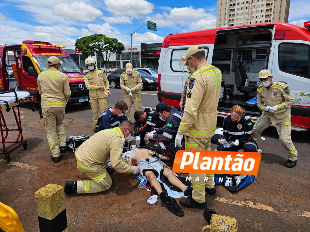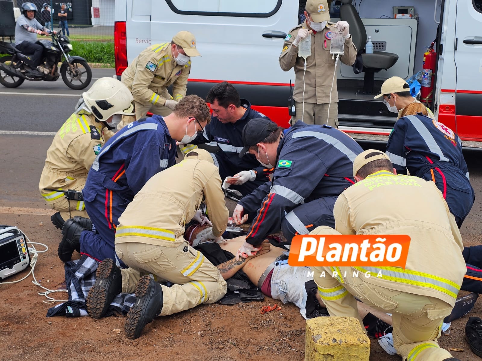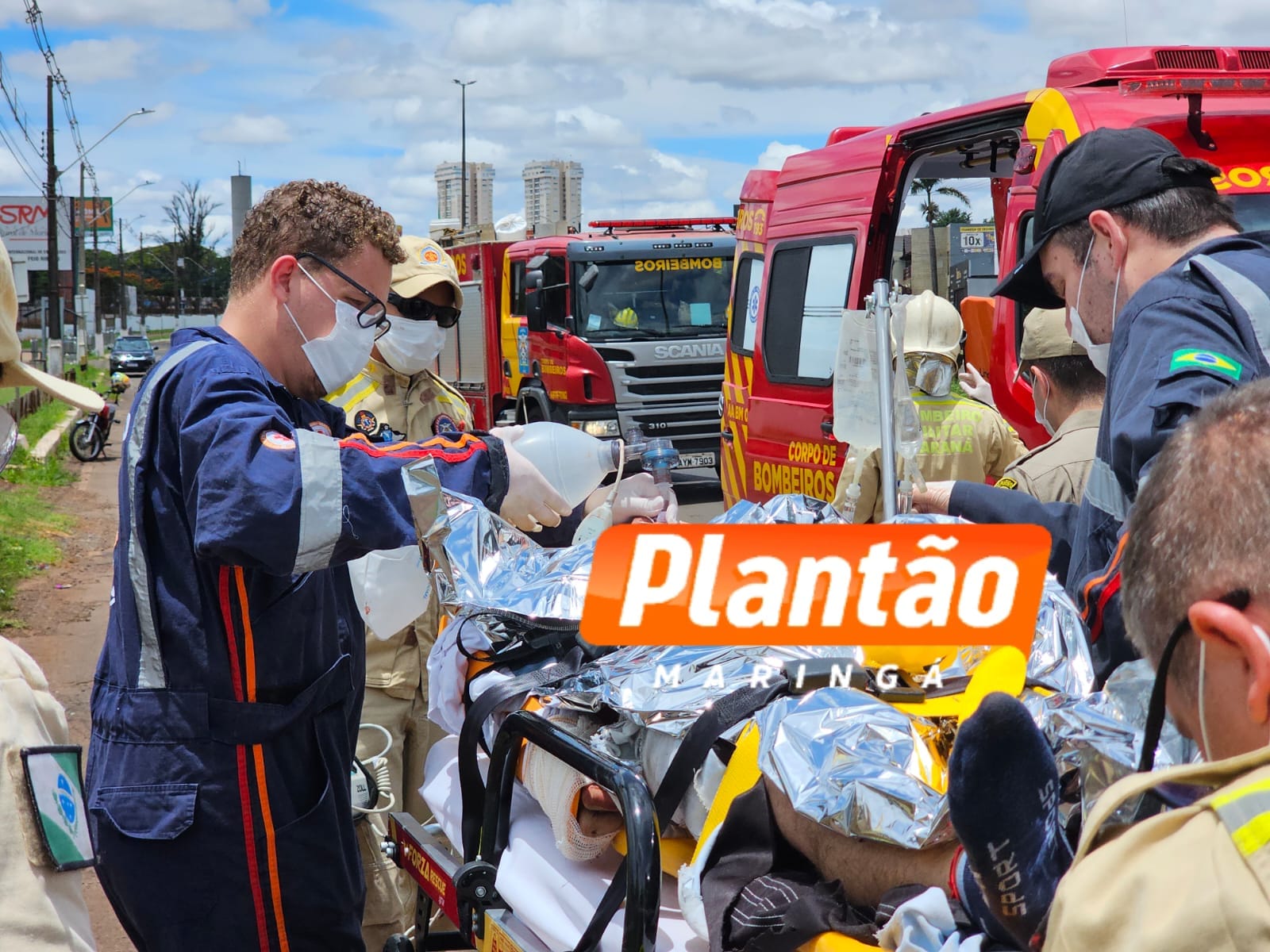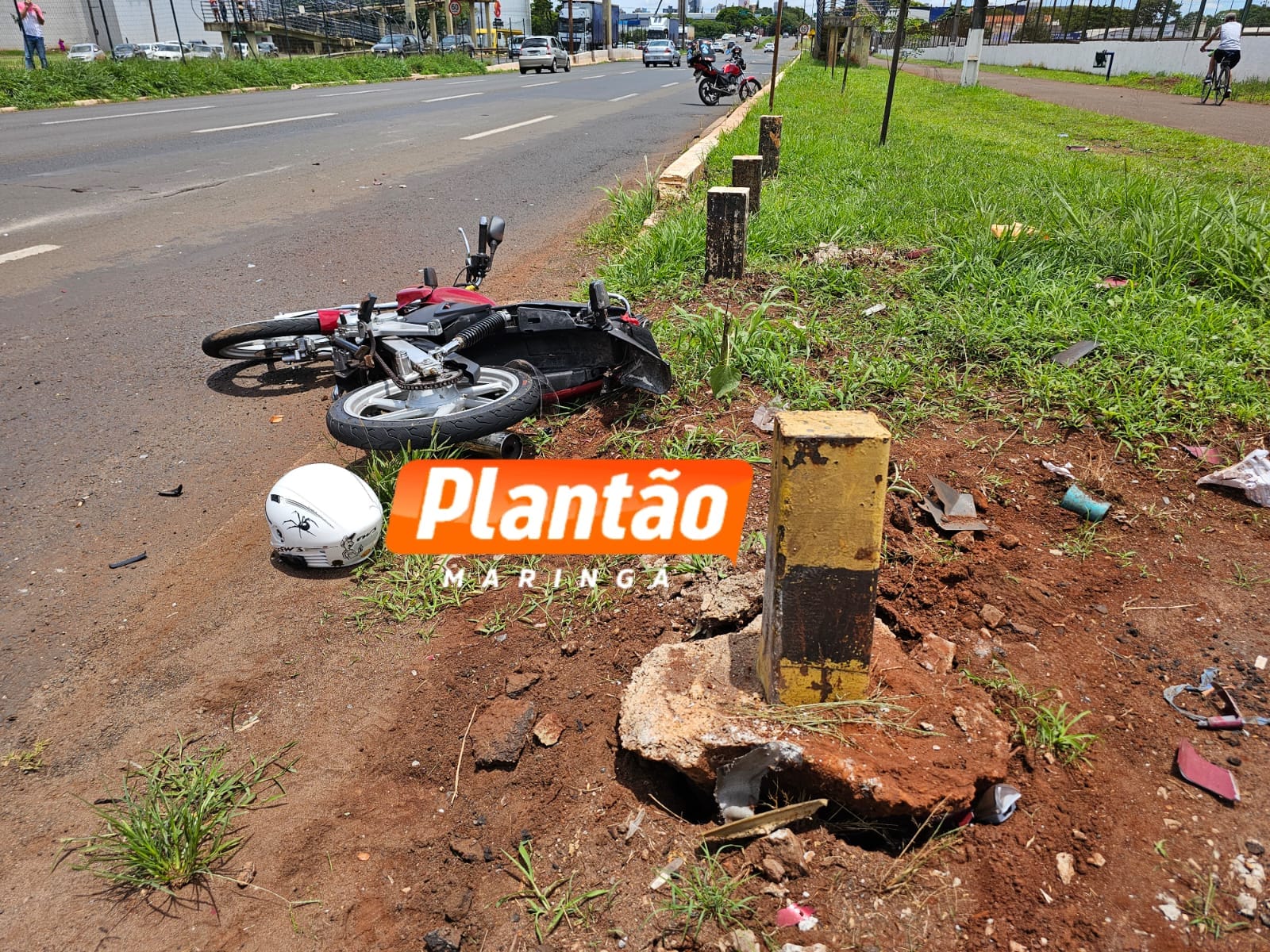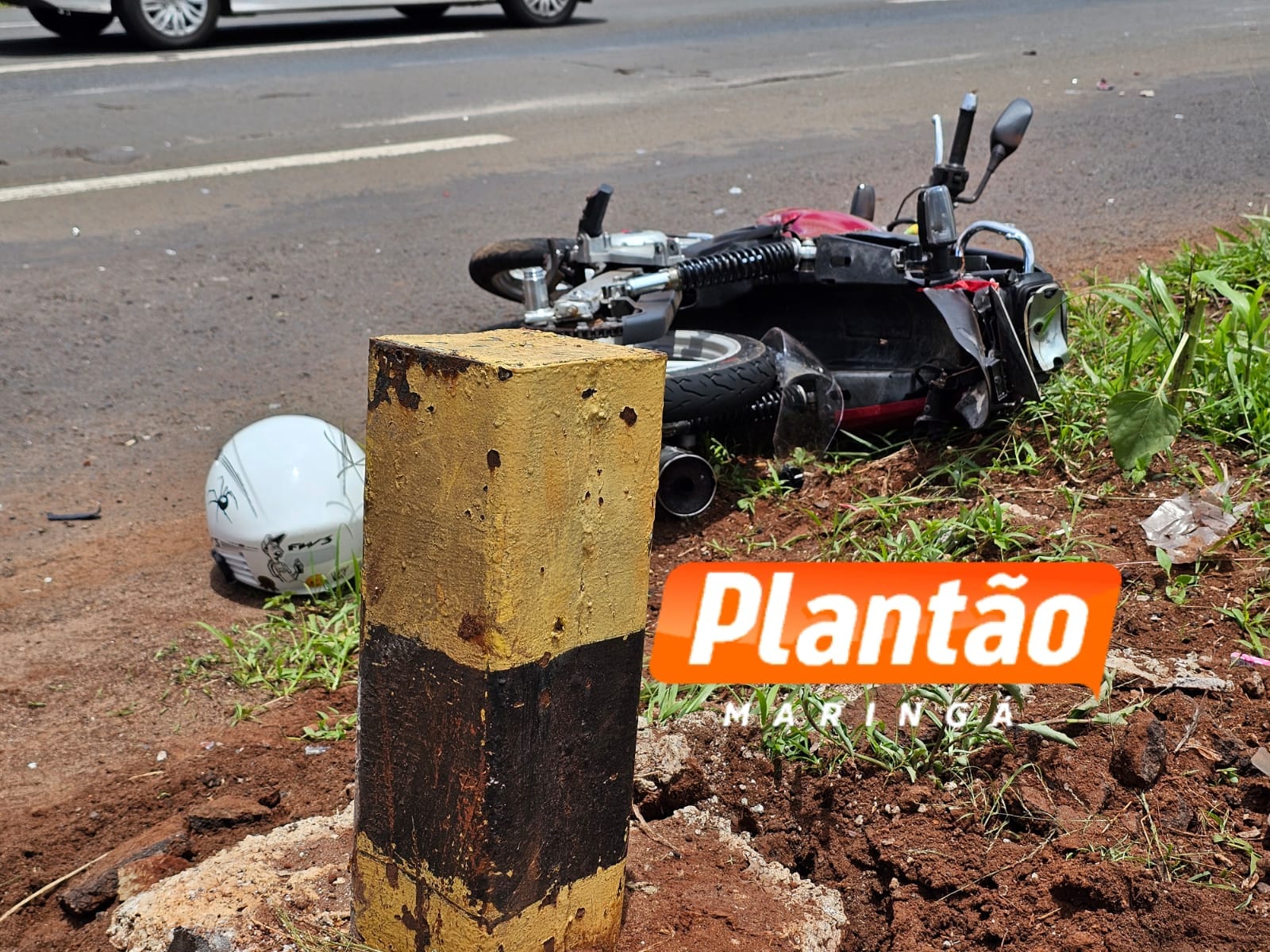 Guilherme Neto, motociclista, foi socorrido em estado gravíssimo após sofrer uma queda de moto no final da manhã deste domingo (09), na Avenida Colombo, em frente ao Parque de Exposições de Maringá.