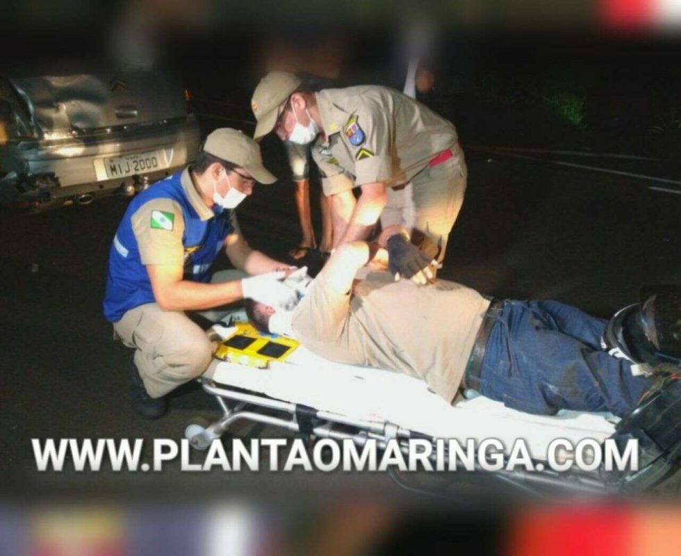 Um motociclista ficou ferido após bater na traseira de um carro na noite desta sexta-feira (23), na BR-376 próximo a venda São Domingos, em Maringá. O motociclista bateu com violência na traseira de um Citroen C4 Pallas. A homem que apresentava sinais de embriaguez, sofreu ferimentos na cabeça e no braço. O repórter cinematográfico Theddy Gonçalves que retornava do acidente que havia ocorrido minuto antes, a cerca de 2 km do local, presenciou o acidente. Rapidamente nossa equipe acionou o 192, e permanecemos no local realizando a sinalização para evitar nos acidentes, e mesmo quando, nosso cinegrafista realizava a sinalização, utilizando o iluminador que nos utilizamos para registrar as imagens, um veículo Golf em alta velocidade, foi realizar uma manobra para mudança de faixa acabou batendo na lateral de um caminhão. Os dois motoristas entraram em acordo e dispensaram o boletim de ocorrência. Já o motociclista foi encaminhado ao Hospital Universitário com ferimentos graves sem risco a vida. Assim que nós se preparávamos para deixar o local, recebemos a informação de que mais um grave acidente havia ocorrido na entrada de Mandaguaçu.