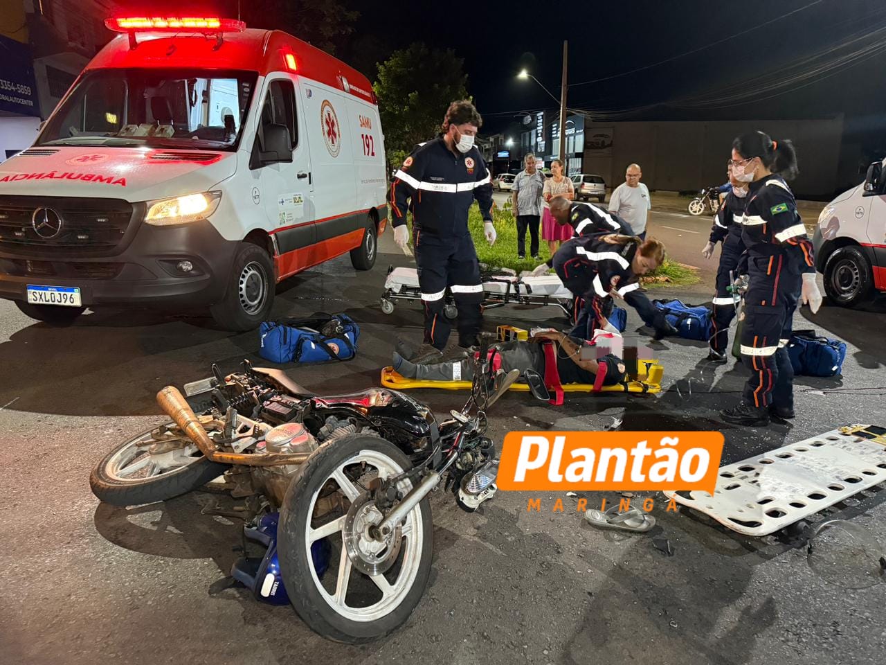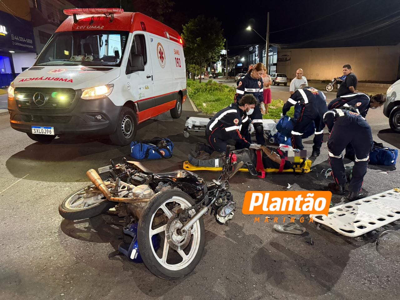 Um grave acidente de trânsito foi registrado na quarta-feira (21), na Avenida Doutor Alexandre Rasgulaeff, esquina com a Rua Esmeralda, em Maringá, envolvendo uma motocicleta e um automóvel.