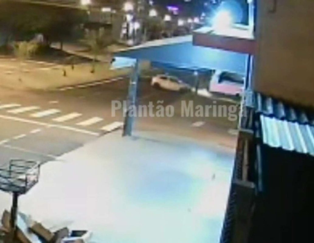 Um motorista derrubou um poste na madrugada deste domingo (29), em Maringá. Ele fugiu em seguida. Veja o vídeo aqui