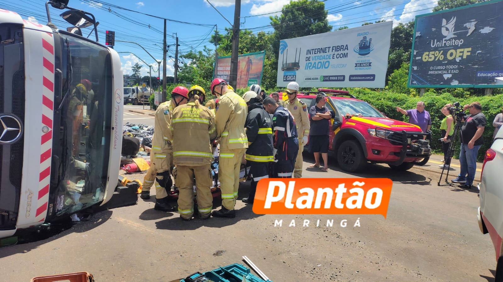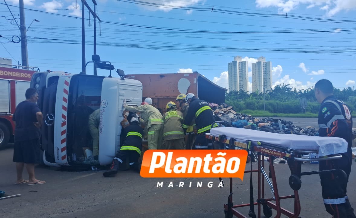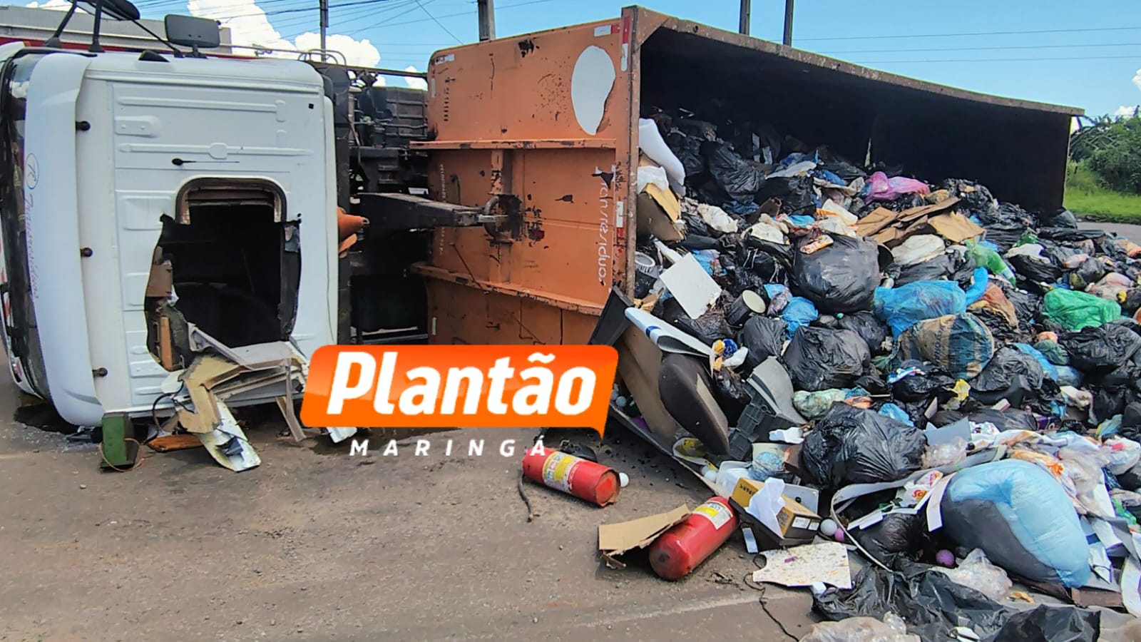 Um motorista de 46 anos, da coleta seletiva ficou gravemente ferido após o caminhão que ele conduzia tombar no cruzamento do Contorno Sul com a Estrada São José, em Maringá. O acidente ocorreu enquanto o veículo transportava lixo orgânico com destino ao aterro sanitário da cidade.