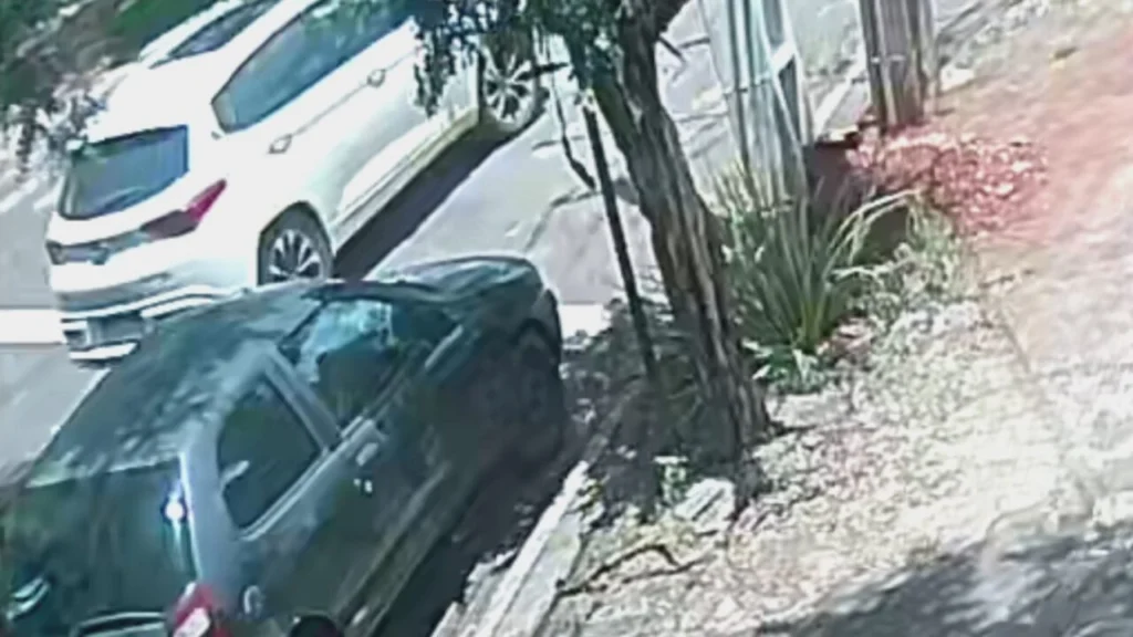 Uma câmera de segurança registrou o momento em que duas senhoras levantam uma motocicleta que havia sido derrubada instantes antes. De acordo com as informações apuradas, a condutora de um SUV da Honda colidiu contra a moto que estava estacionada, provocando a queda.
