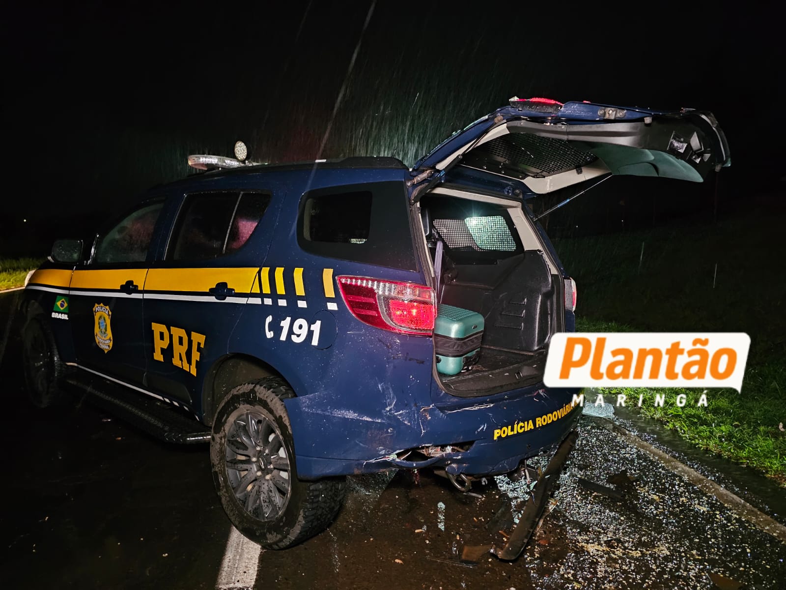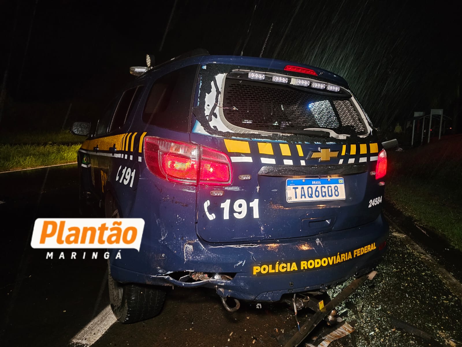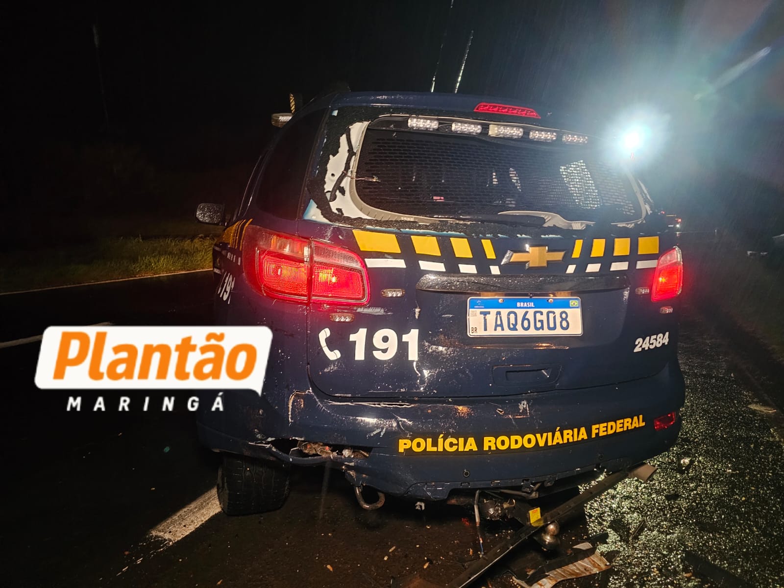 Na sequência, o veículo acabou colidindo na traseira de uma viatura da PRF, que estava parada e fazendo parte da sinalização do acidente.