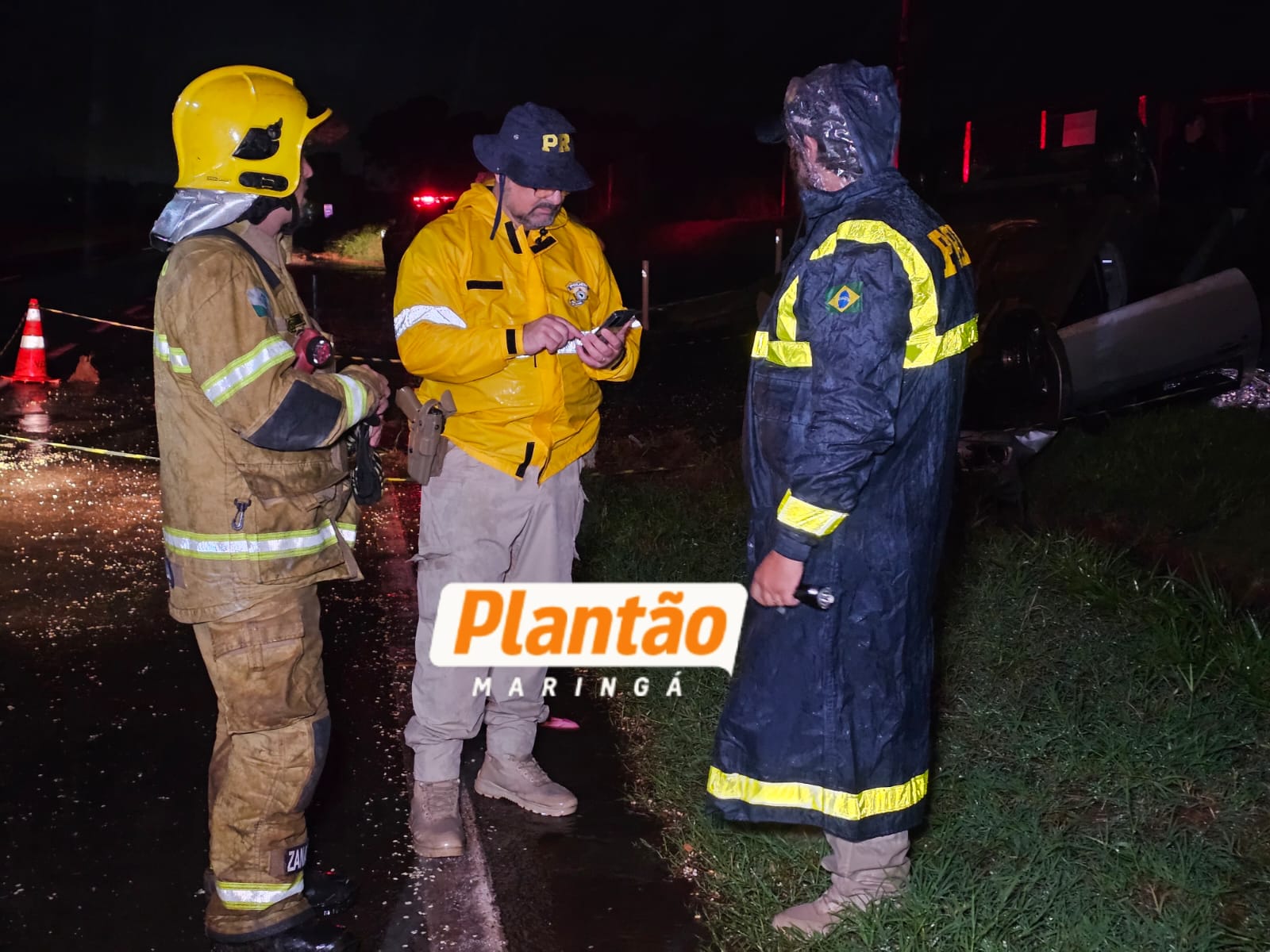 No local, equipes da Polícia Rodoviária Federal (PRF) e do Corpo de Bombeiros realizavam atendimento a um grave acidente ocorrido pouco antes, que resultou na morte de um empresário maringaense após o veículo em que ele estava capotar ao atingir uma capivara.