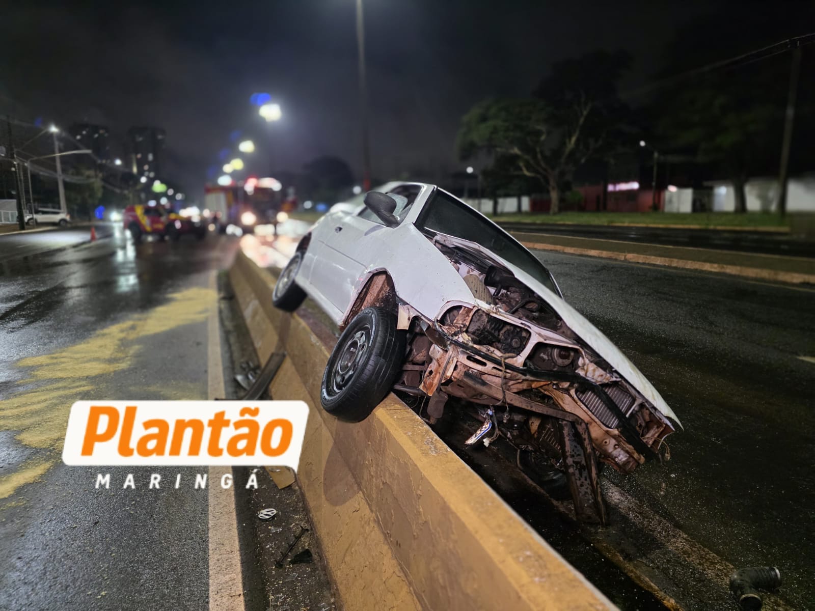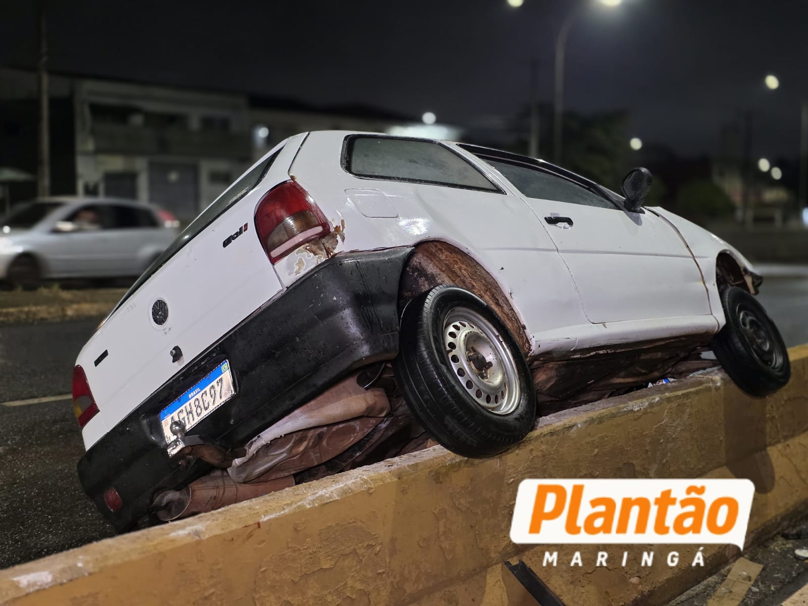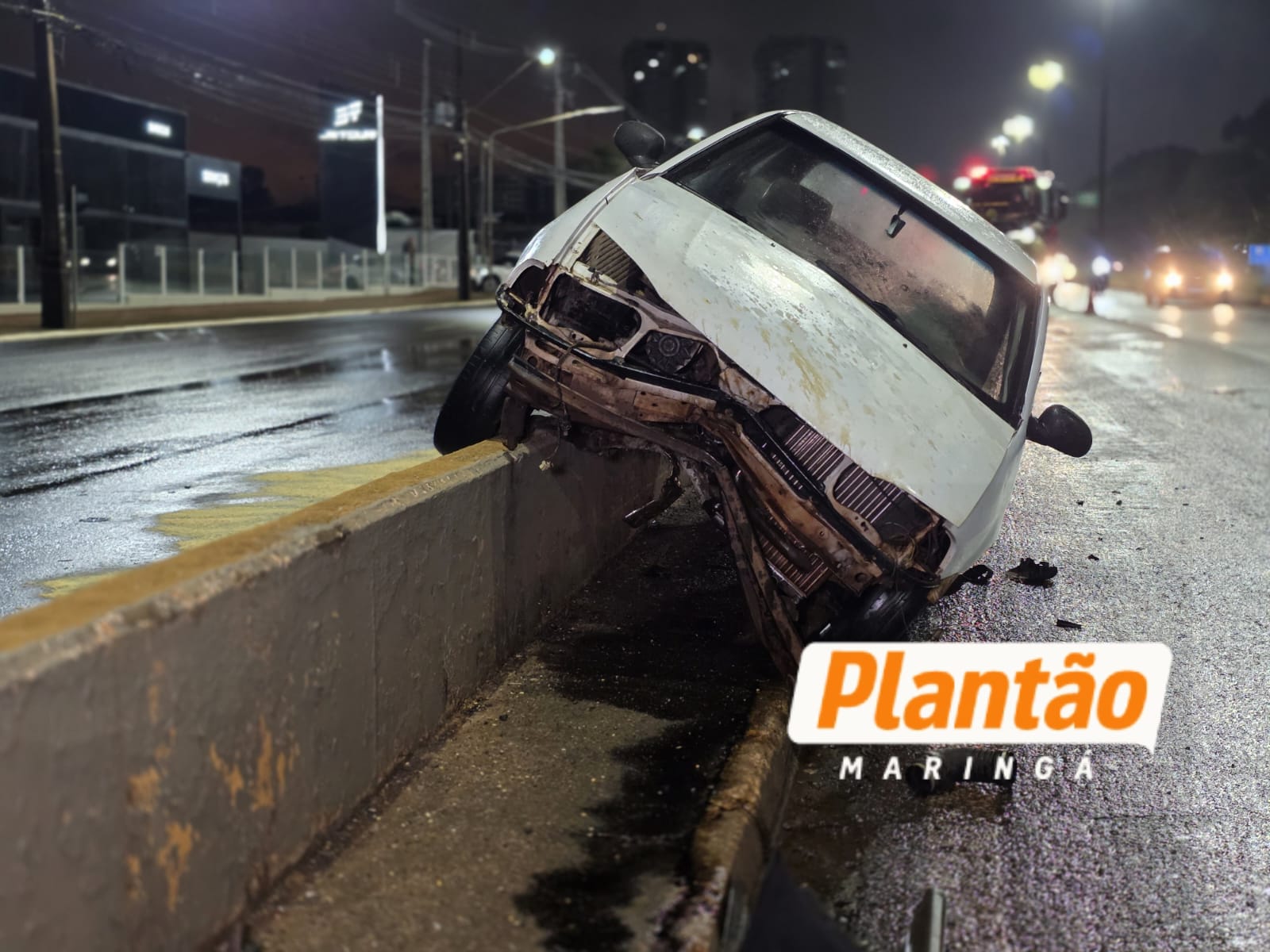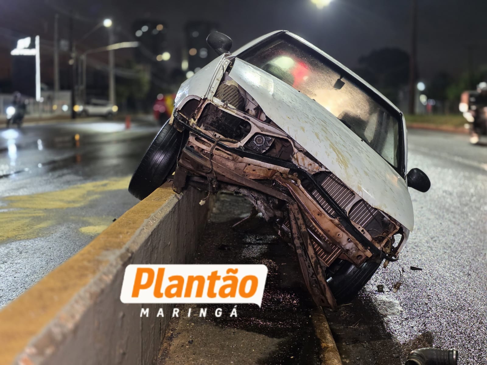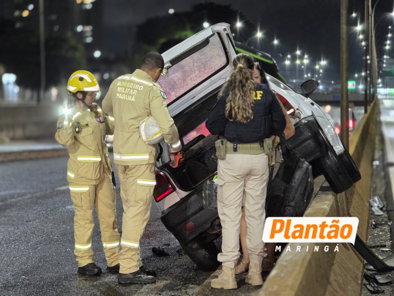 De acordo com informações do Corpo de Bombeiros, o condutor seguia no sentido Sarandi–Maringá quando, por motivos ainda desconhecidos, acabou colidindo contra a “muleta” de proteção do viaduto. Com o impacto, o veículo chegou a subir sobre a estrutura, ficando parcialmente pendurado.