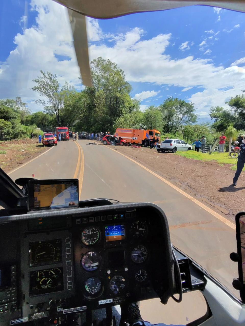 Devido à gravidade, um helicóptero foi acionado para realizar o transporte aeromédico das vítimas ao hospital. O condutor do caminhão saiu ileso.