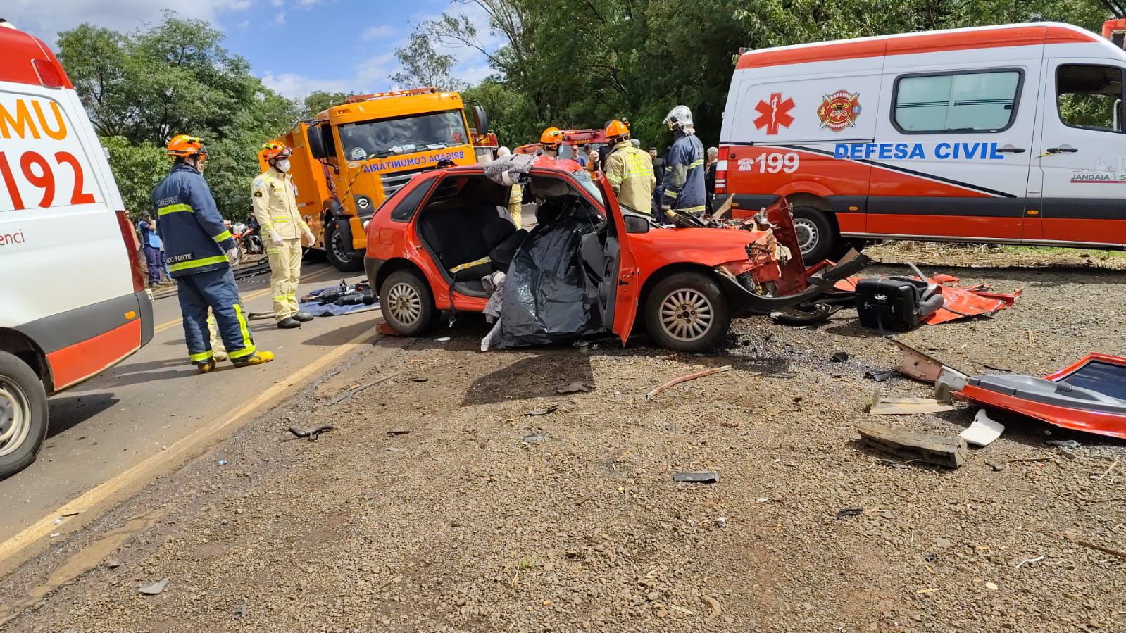 Um grave acidente entre um carro e um caminhão foi registrado na manhã desta segunda-feira (24), na BR-369, em Jandaia do Sul, na saída para o Distrito de São José. O Corpo de Bombeiros informou que o motorista do carro morreu ainda no local da batida, enquanto outras duas pessoas que estavam no veículo ficaram feridas.