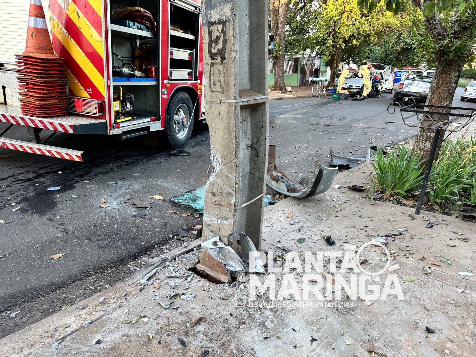 Um motorista perdeu o controle do veículo que dirigia e colidiu com um carro estacionado e um poste de energia elétrica na manhã desta quarta-feira (19), no Conjunto Habitacional Hermann Moraes Barros, em Maringá. O momento do acidente foi captado por uma câmera de segurança. [Vídeo do acidente]
