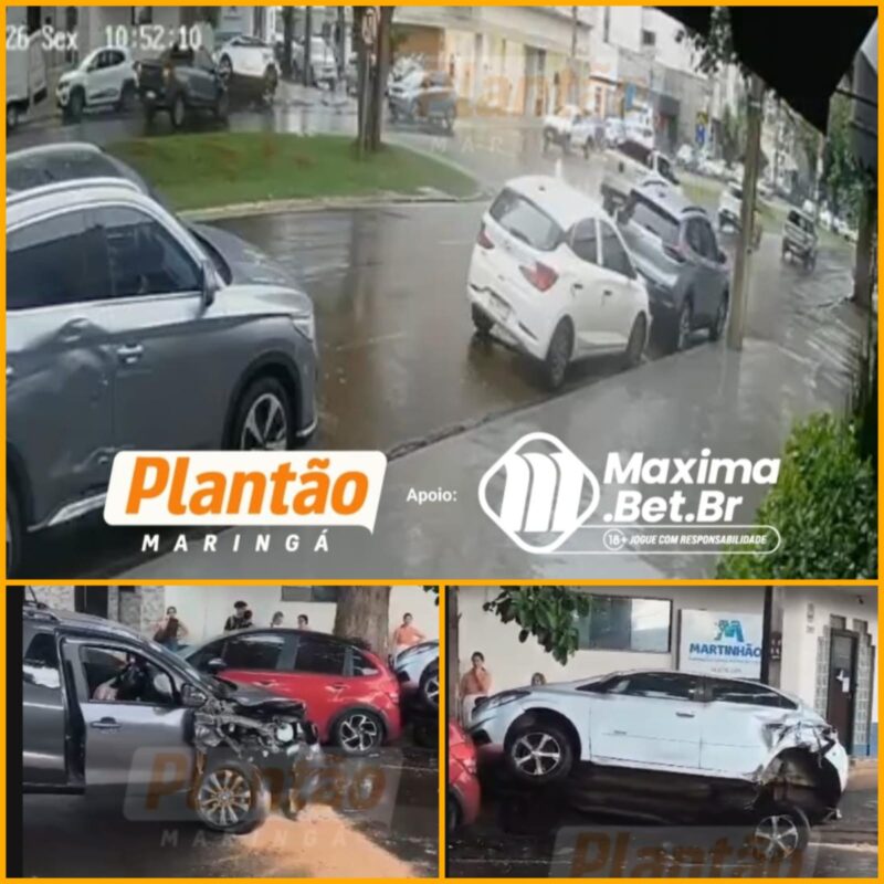 Um acidente foi registrado na manhã desta sexta-feira (13), na Avenida Rio Branco, em Maringá. De acordo com as informações, o condutor de uma Fiat Strada, por motivos ainda desconhecidos, perdeu o controle da direção e acabou atingindo dois veículos que estavam estacionados na via. Com a força do impacto, um dos carros quase chegou a tombar.