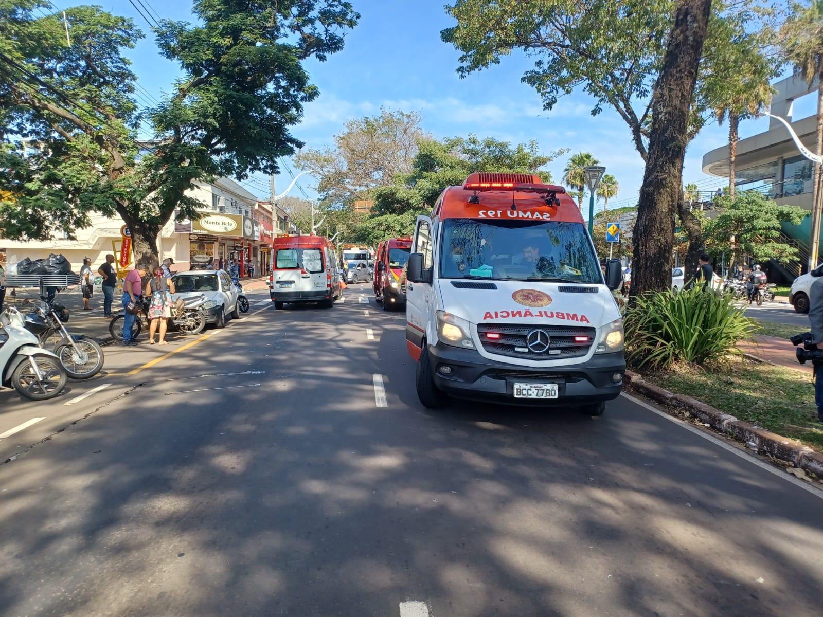 De acordo com informações do Corpo de Bombeiros, a pedestre sofreu traumatismo craniano e foi encaminhada ao Hospital Bom Samaritano. Um casal de irmãos que estava na moto também ficaram feridos.