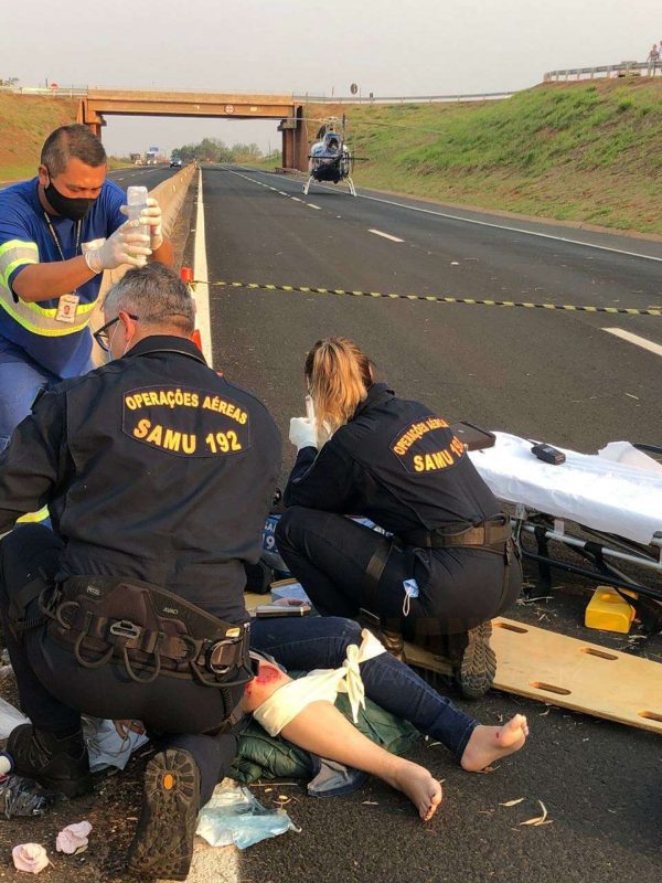 Geisiane dos Santos, de 30 anos foi levada pelo helicóptero do SAMU, ao Hospital Universitário, com fratura de fêmur e bacia. O acidente mobilizou equipes da VIAPAR e SAMU.