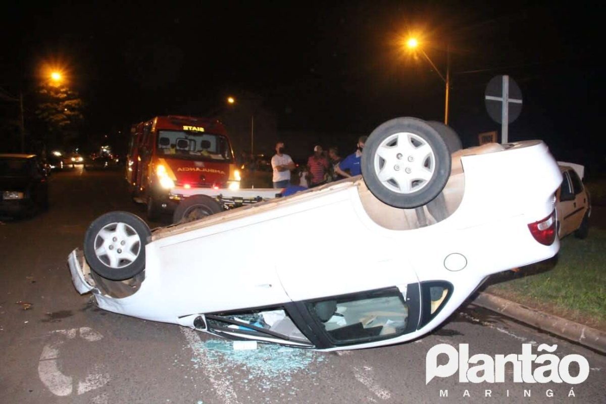 Uma motorista ficou ferida após o carro que ela dirigia capotar no bairro Cidade Alta, em Maringá, nesta quinta-feira (28), segundo o Corpo de Bombeiros.