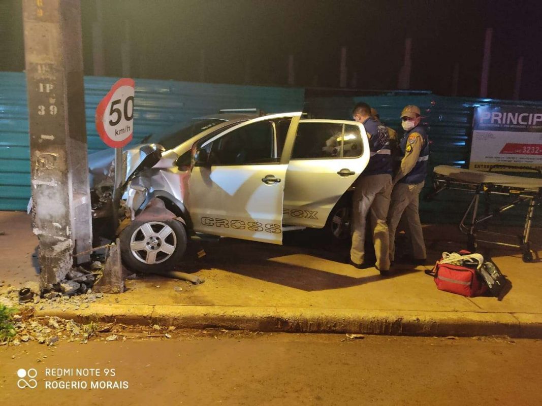 Uma mulher ficou ferida após um acidente na noite desta quarta-feira (25), em Maringá. A vítima teria perdido o controle do veículo e atingido um poste na Avenida Kakogawa.