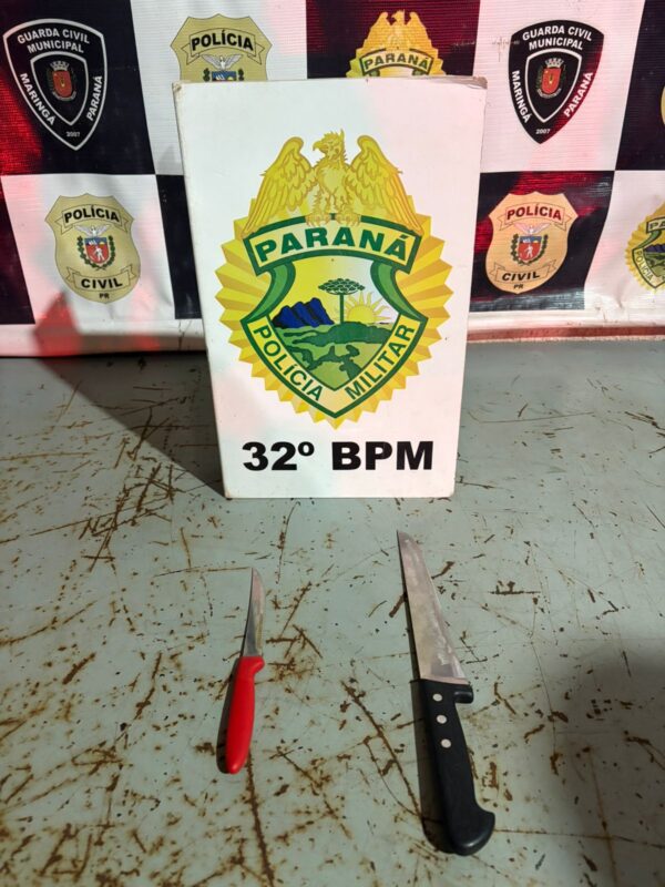 A Polícia Militar apreendeu duas facas utilizadas na ocorrência. Todos os envolvidos foram encaminhados à Delegacia de Polícia Civil de Maringá para os devidos procedimentos.