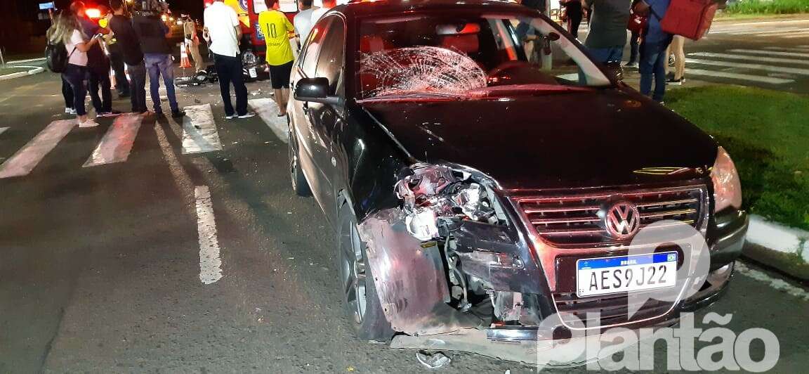 Uma mulher, de 27 anos sofreu ferimentos graves, após um acidente de trânsito, em Maringá. O acidente aconteceu na noite desta terça-feira (03). Segundo informações de testemunhas, a motociclista seguia em uma Honda Biz pela Avenida Tiradentes, quando o motorista de um VW Polo, que seguia pela mesma avenida, porém sentido contrário tentou fazer uma conversão para ter acesso, a Avenida Herval, invadindo a preferencial.