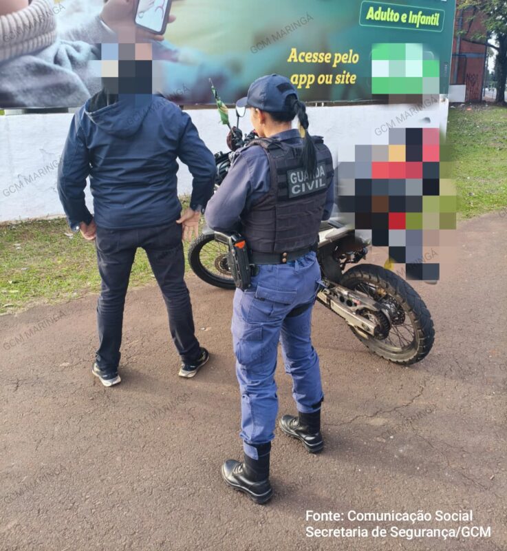 Na tarde deste sábado (14), uma equipe da Guarda Civil Municipal de Maringá realizava patrulhamento pelo bairro Vila Morangueira quando avistou uma motocicleta com indícios de adulteração na placa, que estava parcialmente coberta com fita isolante.