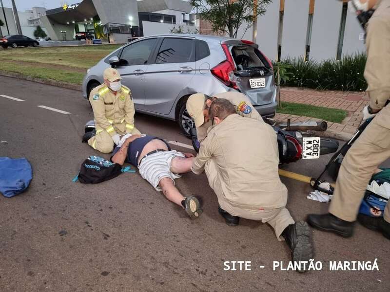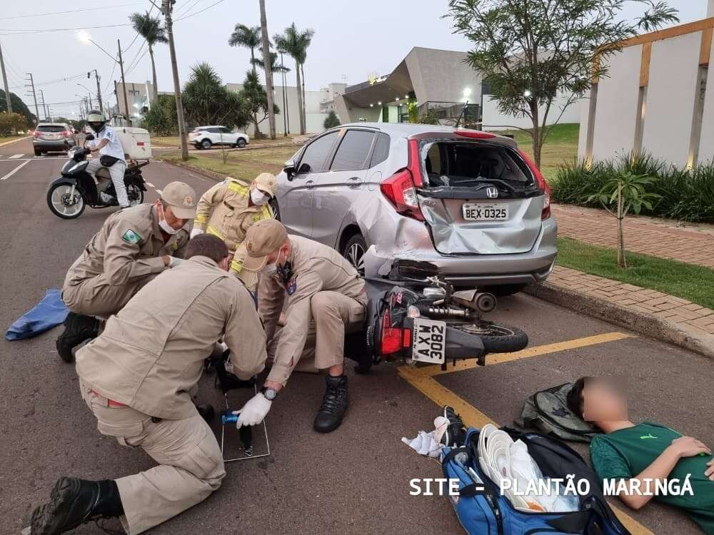 A batida foi registrada na Avenida Cerro Azul, próximo a Rotatória da Avenida Nildo Ribeiro da Rocha Neto. O Corpo de Bombeiros informou que a moto bateu na traseira do carro que estava estacionado.