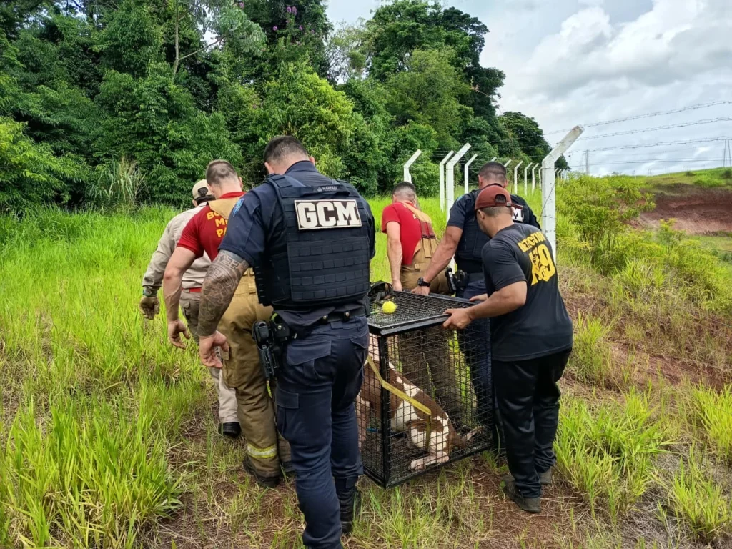 A Guarda Civil Municipal (GCM) de Sarandi, com o apoio do Corpo de Bombeiros, resgatou na tarde deste domingo, 21, um cachorro que estava abandonado em uma área de mata do município. O animal, da raça pitbull, foi encontrado preso a uma árvore, amarrado e usando focinheira.