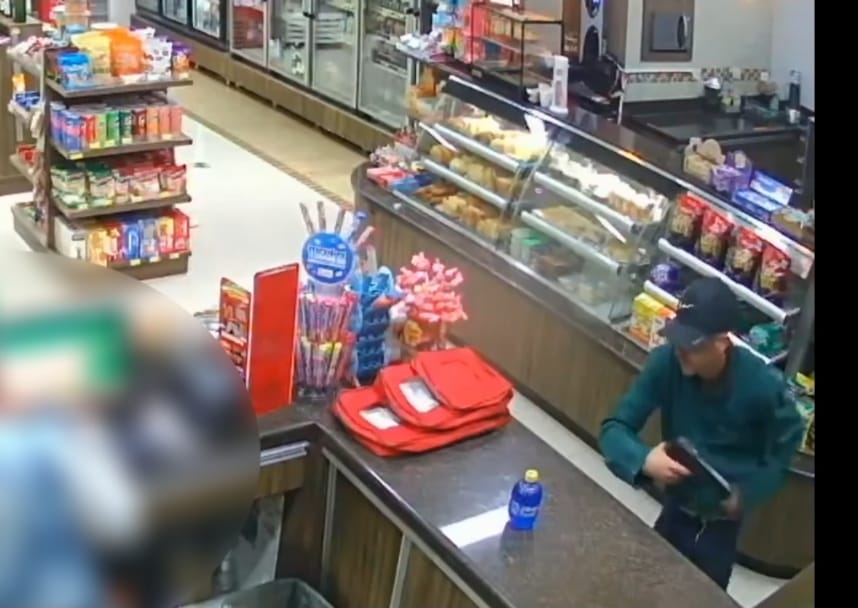 De acordo com as imagens de câmeras de segurança, o suspeito entra na loja de conveniência, pega duas garrafas de bebidas e se dirige ao caixa. Em seguida, saca uma arma de fogo e ameaça a funcionária, exigindo o dinheiro. Assustada, a trabalhadora pede ajuda, momento em que um frentista aparece, mas também é ameaçado pelo criminoso. Após a ação, o autor foge em direção ao Jardim Alvorada.