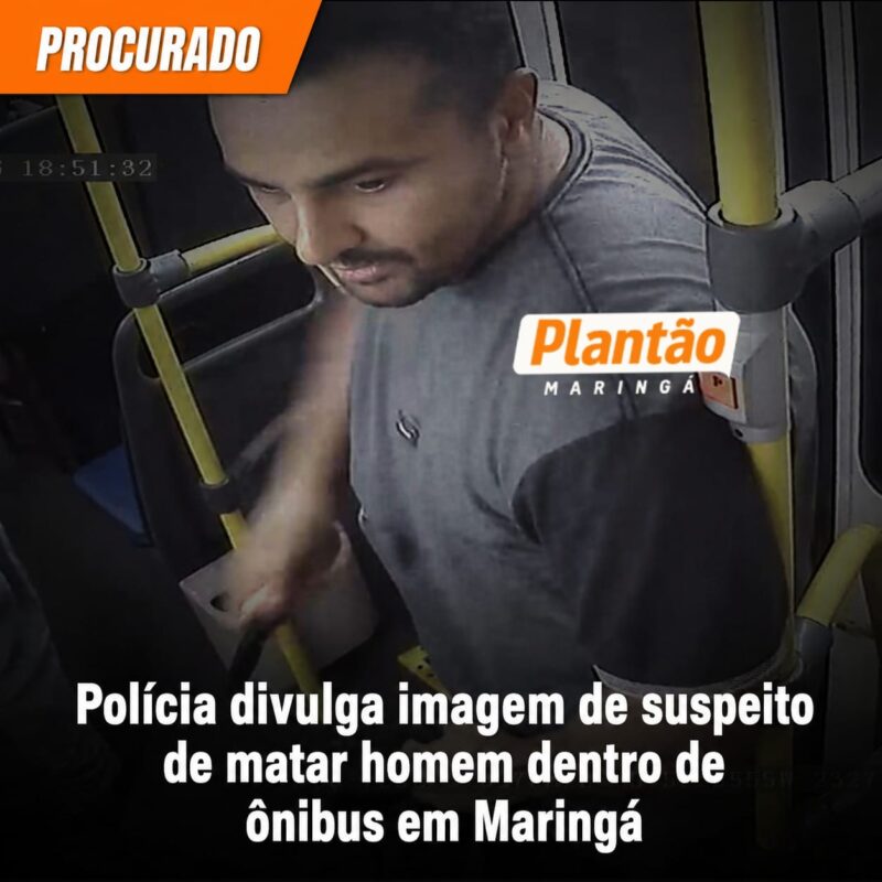 A polícia divulgou a imagem do suspeito de matar um homem dentro de um ônibus do transporte coletivo, na noite desta segunda-feira (27), em Maringá. Quem tiver qualquer informação que possa ajudar na identificação ou localização do autor deve entrar em contato com as autoridades.