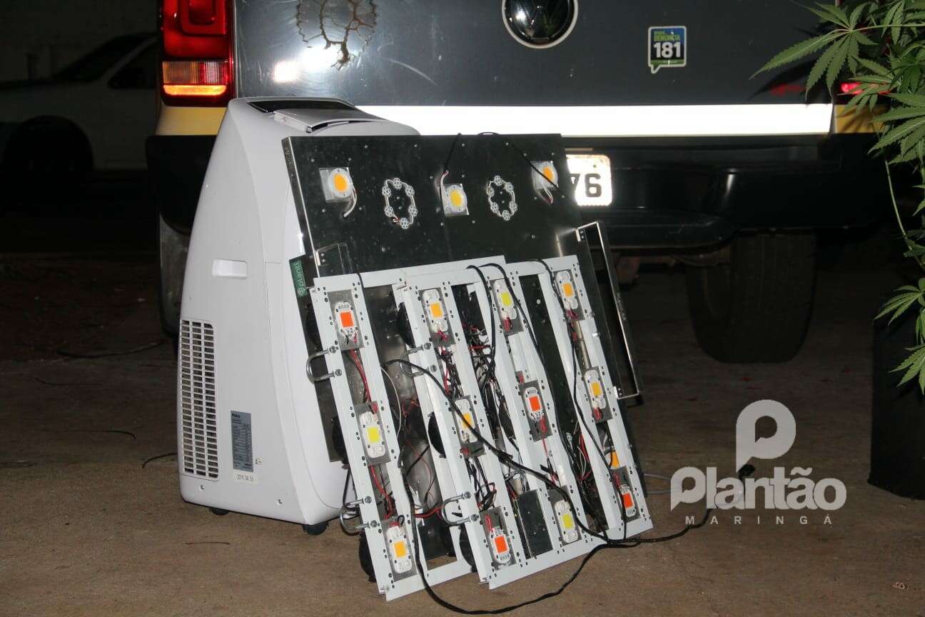 Durante revista no imóvel, os policiais encontraram em um dos quartos uma estufa com 25 vasos de pés de maconha. A estufa possuía um ar-condicionado e cinco placas de iluminação avaliadas em 14 mil reais.