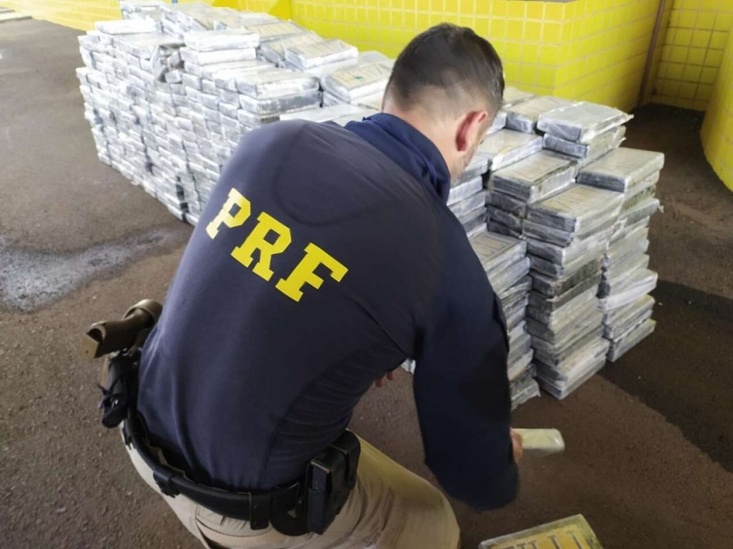 Uma ação conjunta da Polícia Federal e Polícia Rodoviária Federal, resultou em uma grande apreensão de cocaína na tarde desta quinta-feira (18). Todo o entorpecente era transportado em um fundo falso descoberto pelos policiais, no teto do baú de um caminhão.