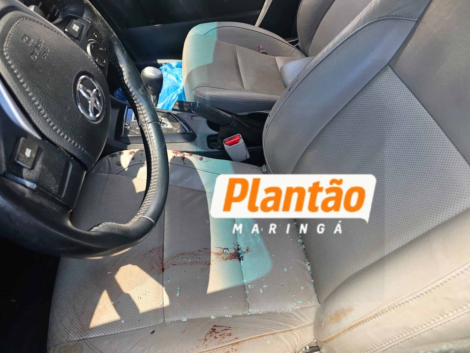 O carro ficou crivado de balas e apresentava manchas de sangue no interior. A Delegacia de Homicídios e Proteção à Pessoa de Maringá já iniciou as investigações.