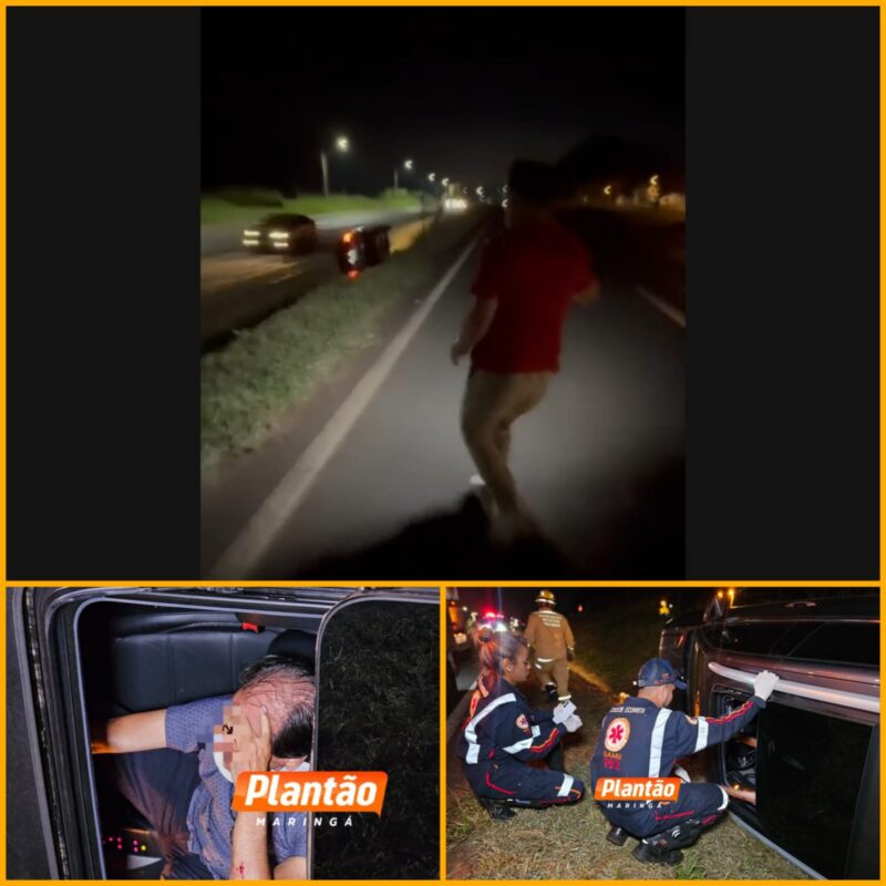 Na noite deste sábado (3), um veículo capotou na rodovia BR-376, nas proximidades da praça São Domingos, em Maringá (PR). O acidente foi presenciado pelos repórteres Theddy Gonçalves e Victor Hugo Corrêa.