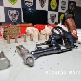 Os policiais realizaram a abordagem e durante a revista foi localizado um revólver calibre 32. Ao consultar a placa do carro, descobriu que o veículo tinha queixa de roubo.
