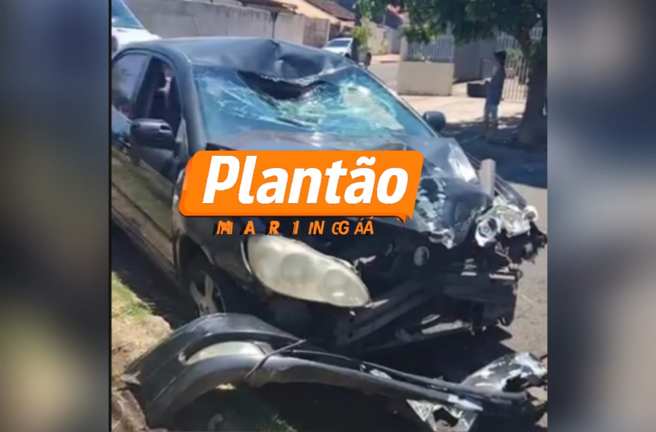 Vídeo mostra caminhonete capotando e derrubando árvore em Maringá