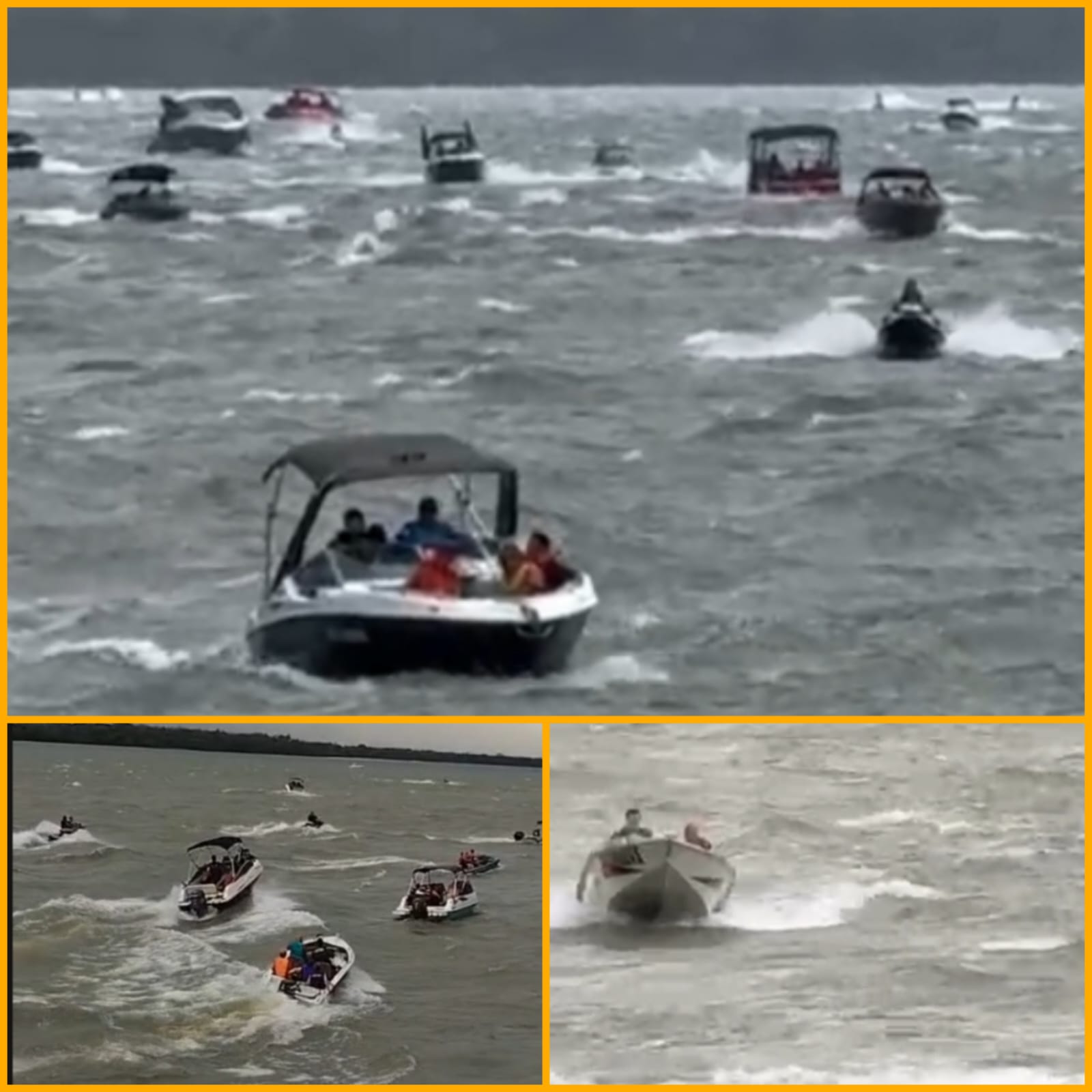 Pilotos de barcos e jet-skis enfrentam ventos intensos em Porto Rico no Rio Paraná; VÍDEO