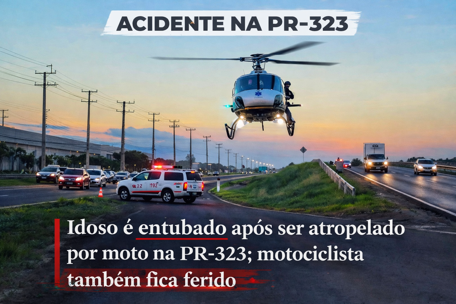 Idoso é intubado após ser atropelado por moto na PR-323; motociclista também fica ferido