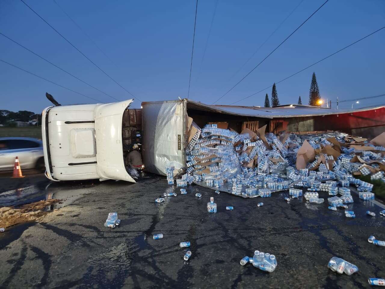 Carreta carregada de cerveja tomba e populares saqueiam carga em Maringá
