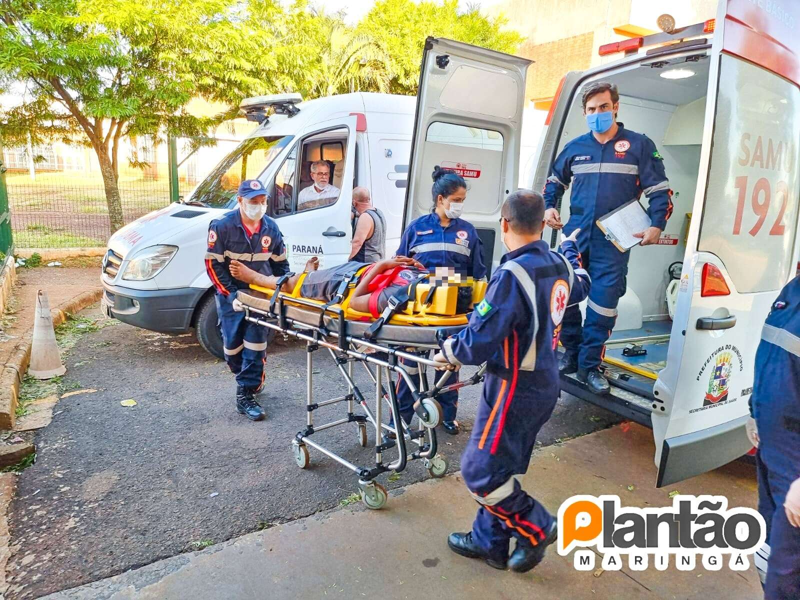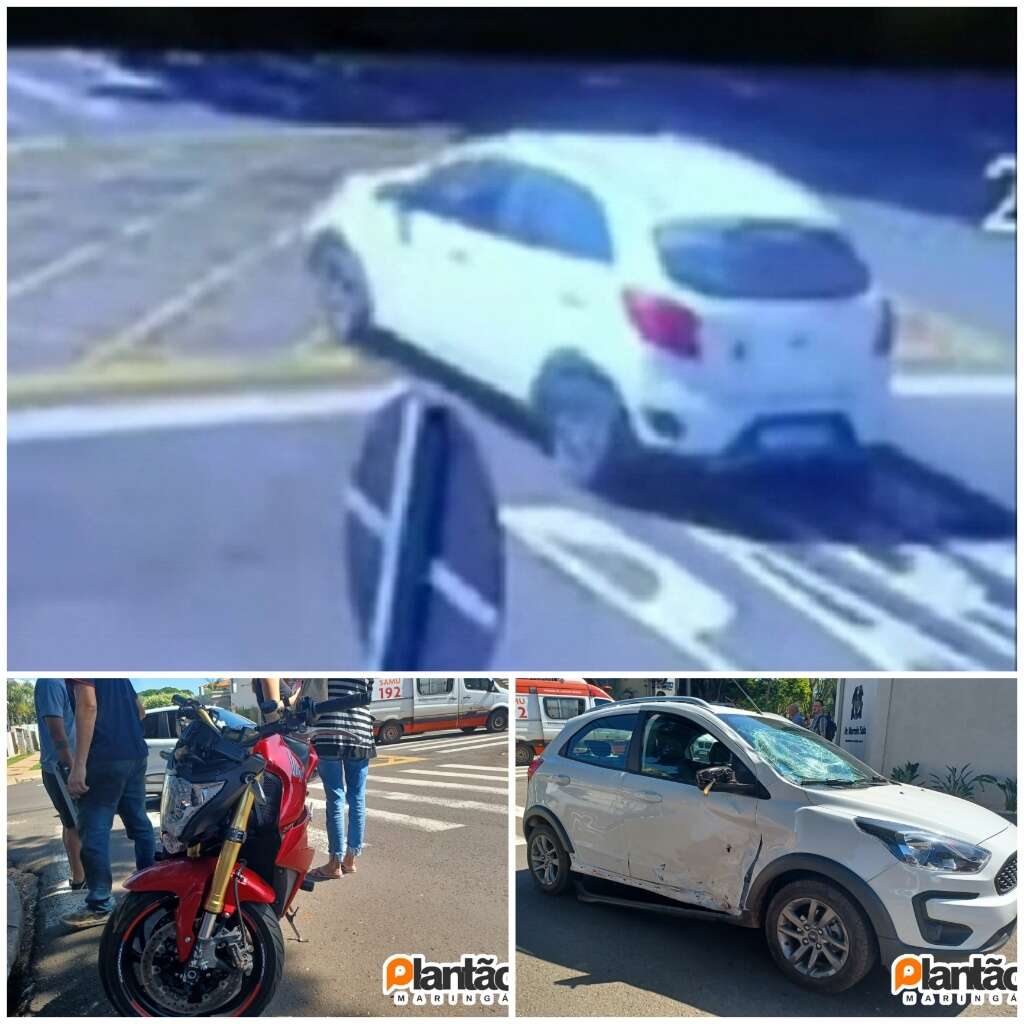 Carro avança preferencial, colide com moto e deixa dois feridos em Maringá