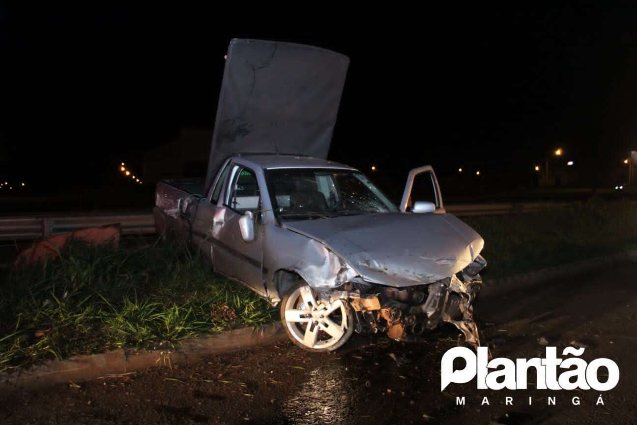 Motorista fica ferido após bater em guard rail, do contorno norte em Maringá