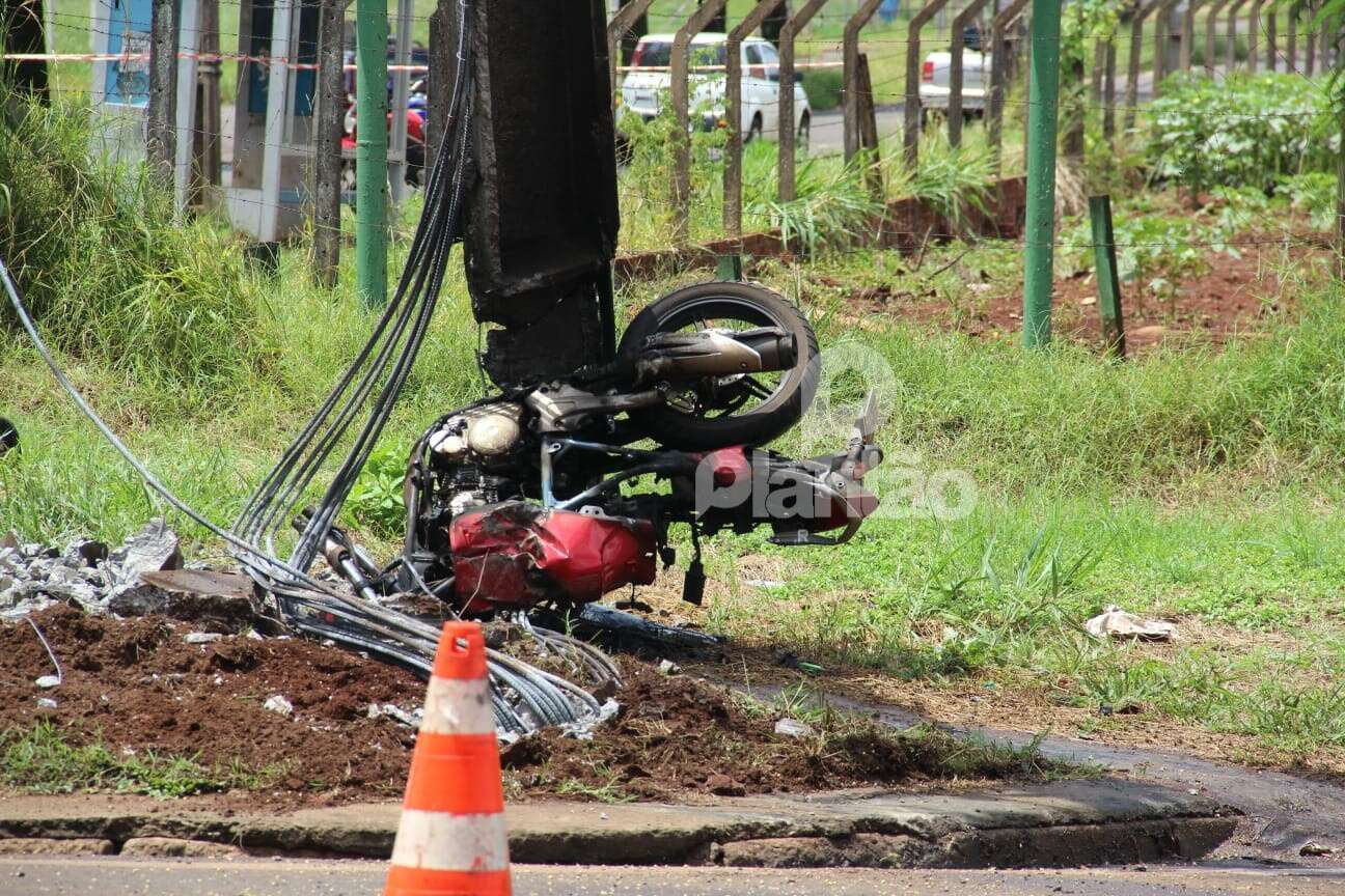 Motociclista morre prensado por carreta contra poste, em Maringá