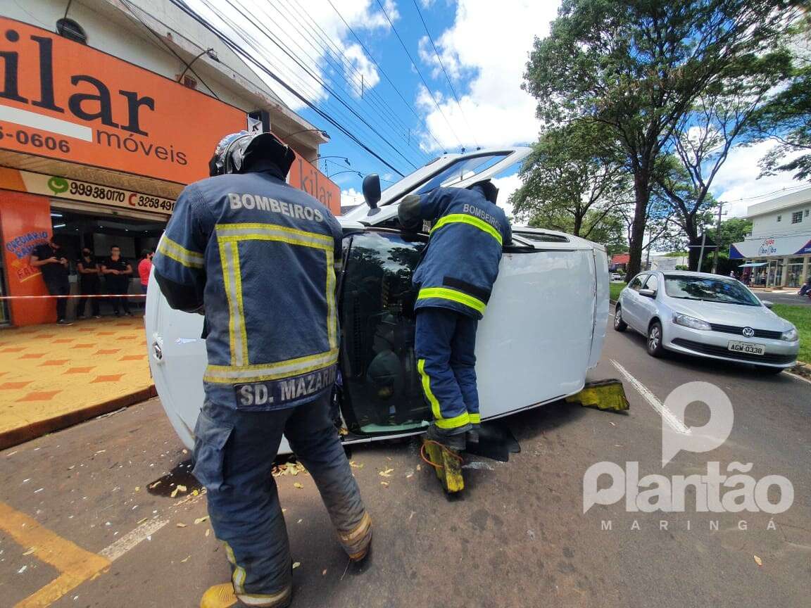 Motorista tomba carro após bater em veículos estacionados, em Maringá