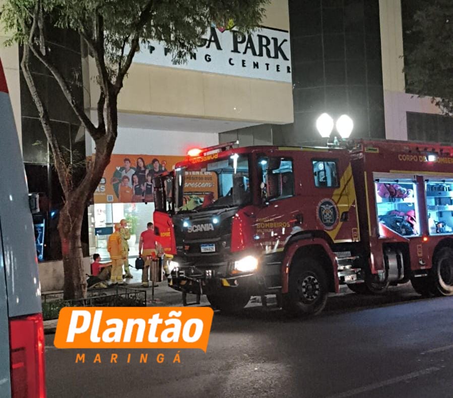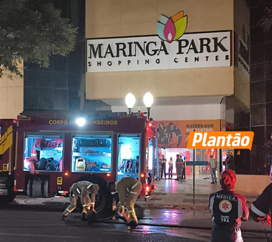 Dois seguranças precisaram de atendimento médico na madrugada deste domingo (08) após um incêndio registrado em uma loja localizada no segundo andar do Shopping Maringá Park, em Maringá.