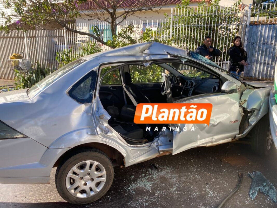 O acidente aconteceu por volta das 8h10 no cruzamento da Rua Antonio Carniel com a Rua Coelho Neto, na Zona 05 de Maringá. A colisão envolveu um veículo Ford Fiesta e um ônibus da Transporte Coletivo Cidade Canção (TCCC).