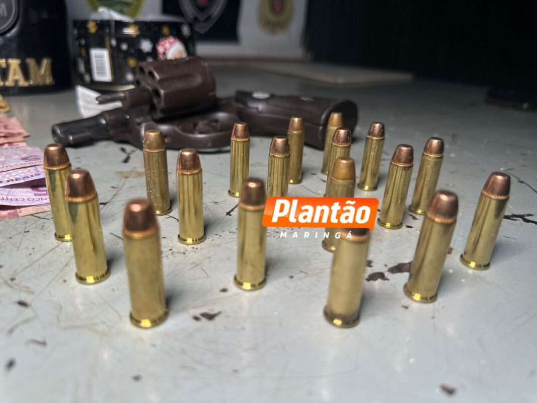 Na abordagem, os policiais localizaram cocaína, um revólver calibre .38 municiado com 18 cartuchos, uma balança de precisão e materiais para embalar drogas.