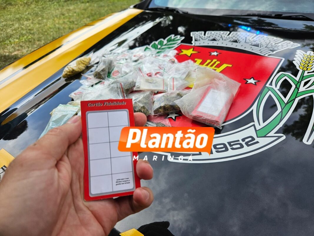 Na tarde desta quarta-feira (27), agentes da Secretaria Municipal de Mobilidade Urbana (Semob) apreenderam drogas e diversos cartões de um programa de recompensas utilizado por traficantes em Maringá. Os cartões prometiam: “Complete e ganhe a 10ª grátis”, evidenciando uma estratégia de fidelização para atrair e manter clientes no tráfico.