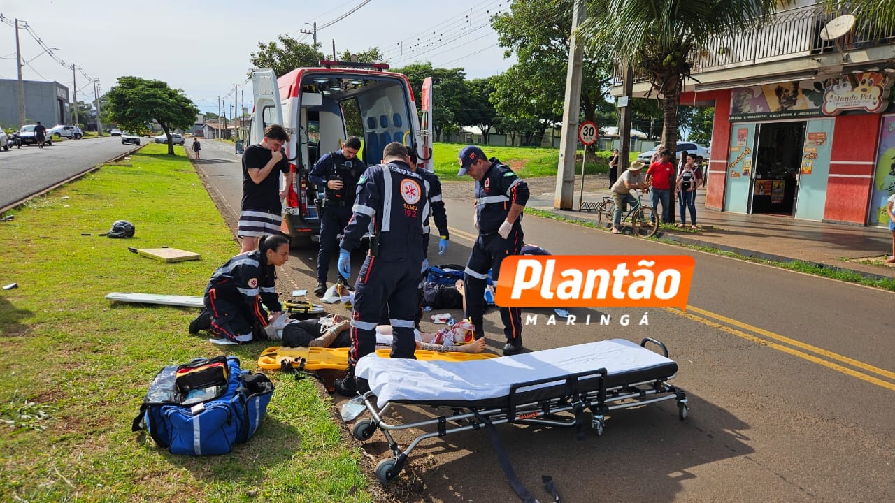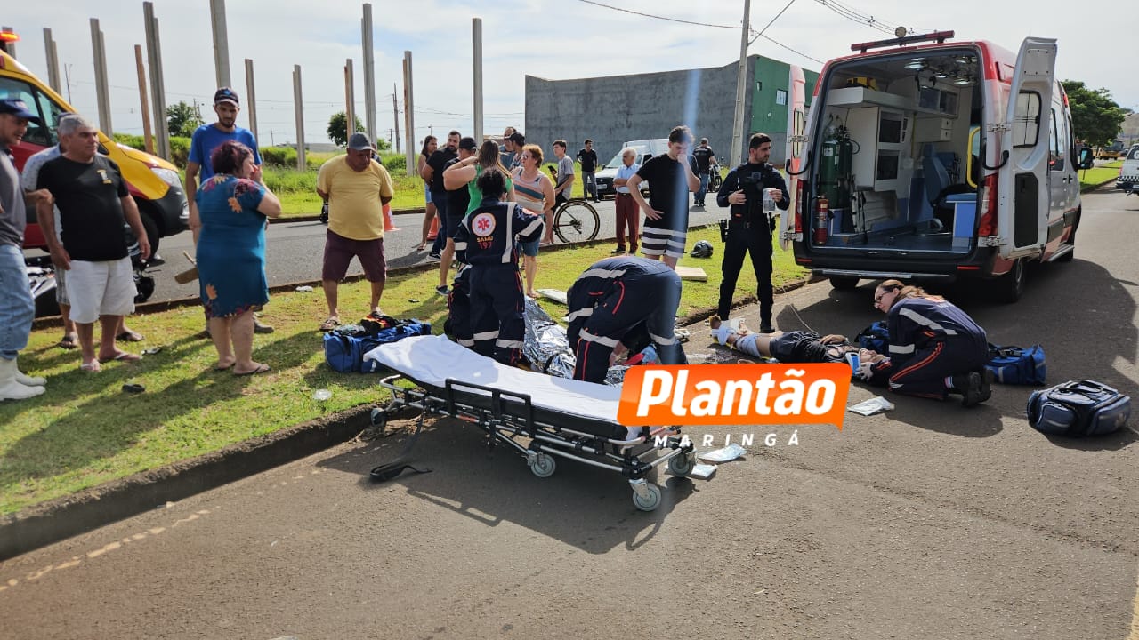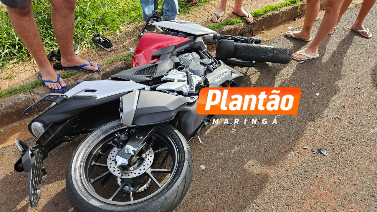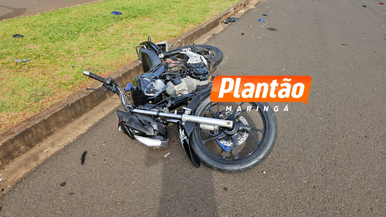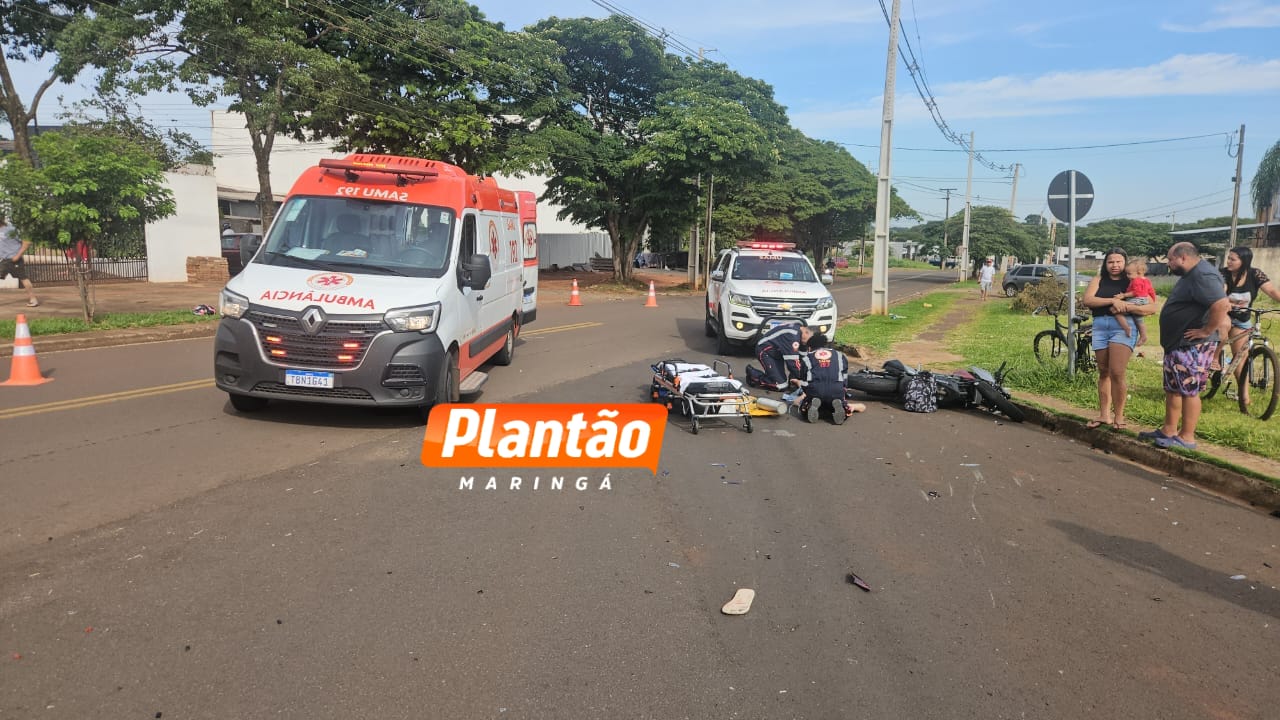 Um grave acidente envolvendo duas motocicletas deixou três pessoas feridas na manhã deste sábado (29). A colisão ocorreu na Avenida Vereador Antônio Bortolotto, no distrito de Iguatemi, em Maringá.