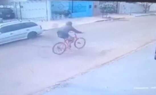 As imagens mostram o momento em que Nathan Guilherme dos Santos Sampaio, de 18 anos foge de bicicleta após praticar o crime. Outra imagem é possível ouvir os disparos.