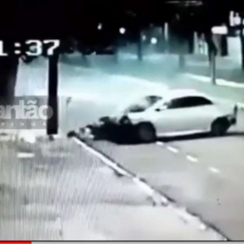 Um acidente que aconteceu na madrugada desta quinta-feira (25), foi flagrado por câmeras de segurança de um estabelecimento comercial em Maringá.