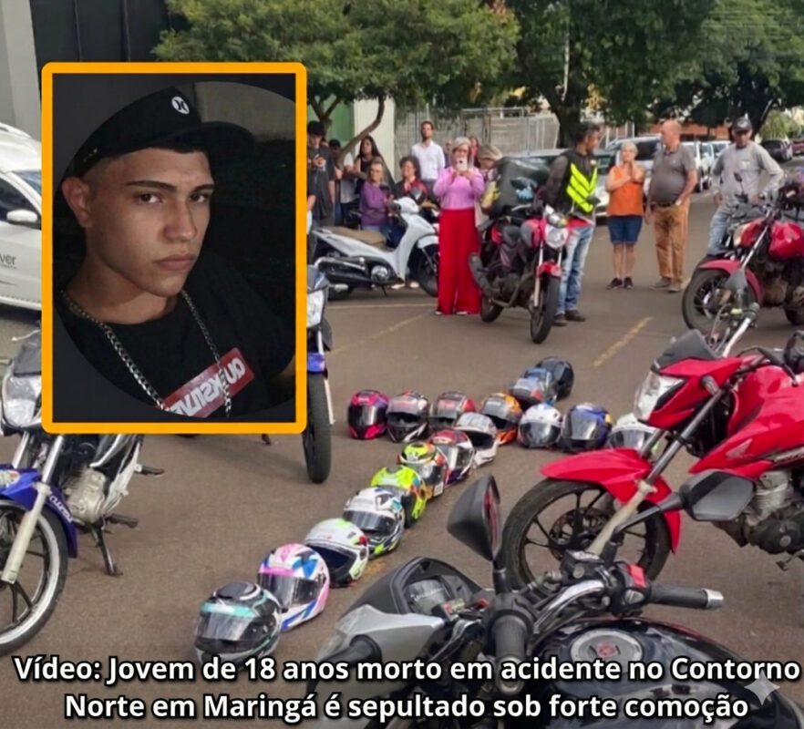 A despedida do jovem de 18 anos que morreu após um grave acidente de moto na marginal do Contorno Norte foi marcada por forte comoção nesta quinta-feira, 16, em Maringá. Amigos e familiares prestaram as últimas homenagens durante o velório e acompanharam o cortejo até o sepultamento no Cemitério Municipal de Sarandi.