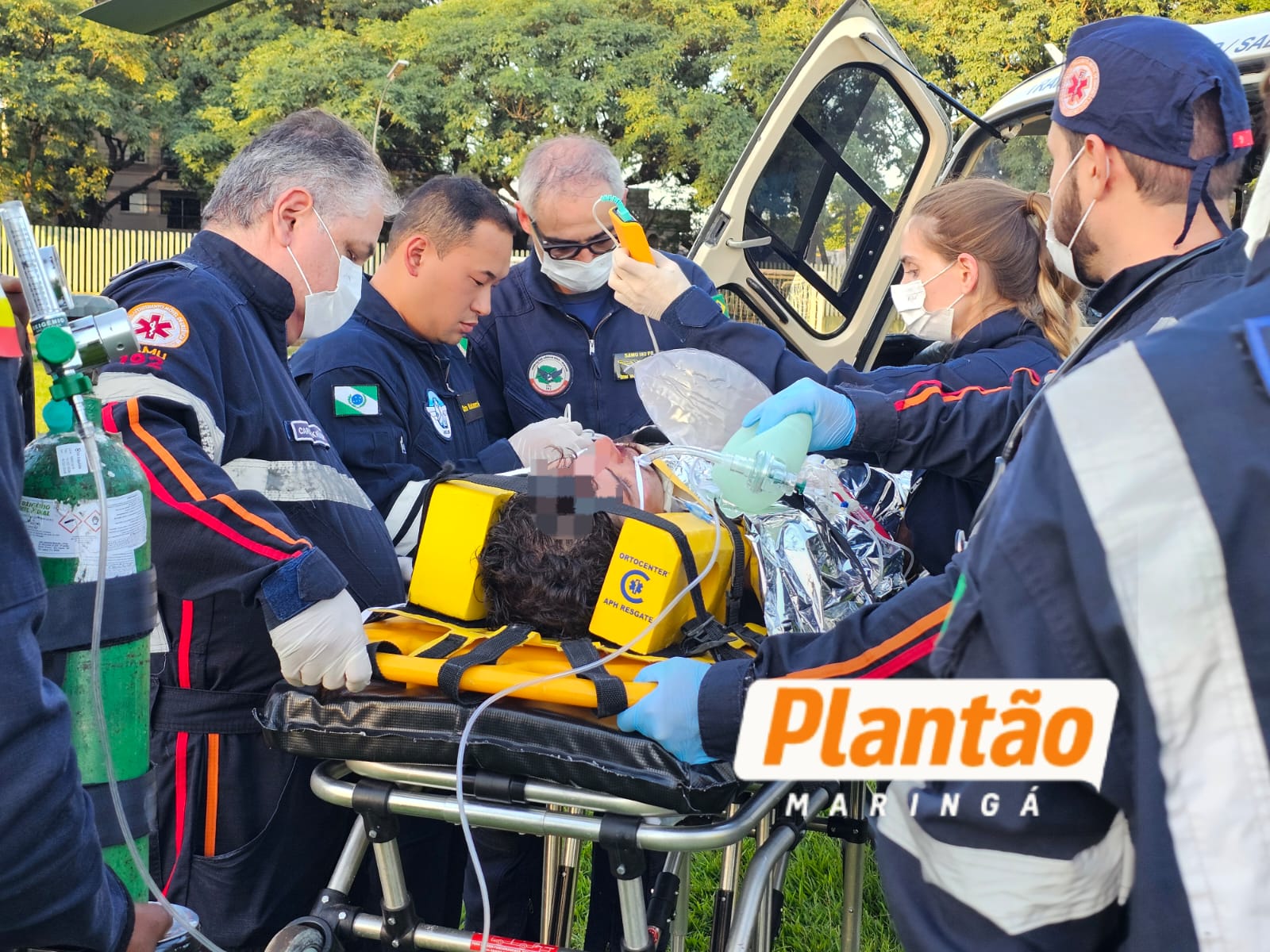 Diante da gravidade dos ferimentos, além da equipe do SAMU de Paiçandu, foi acionada a equipe médica intervencionista e o helicóptero aeromédico, que realizaram o atendimento no local. Segundo o médico do SAMU, João Felipe Santana Maciel, a vítima sofreu diversas fraturas e traumatismo craniano. O jovem precisou ser entubado ainda na cena do acidente e, na sequência, foi encaminhado de helicóptero para a Santa Casa de Maringá.