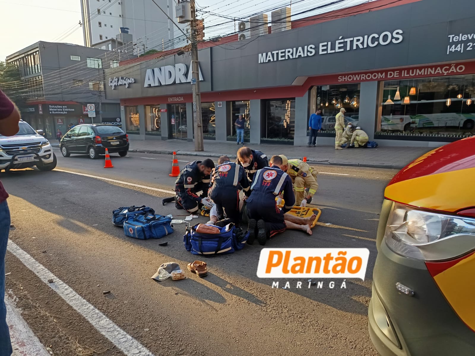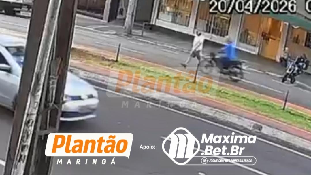 Imagens de uma câmera de segurança registraram o momento em que um pedestre foi atropelado por um motociclista na manhã desta segunda-feira (19), em Maringá. O acidente ocorreu na Avenida Brasil, na região do Maringá Velho, nas proximidades da Praça do Peladão.